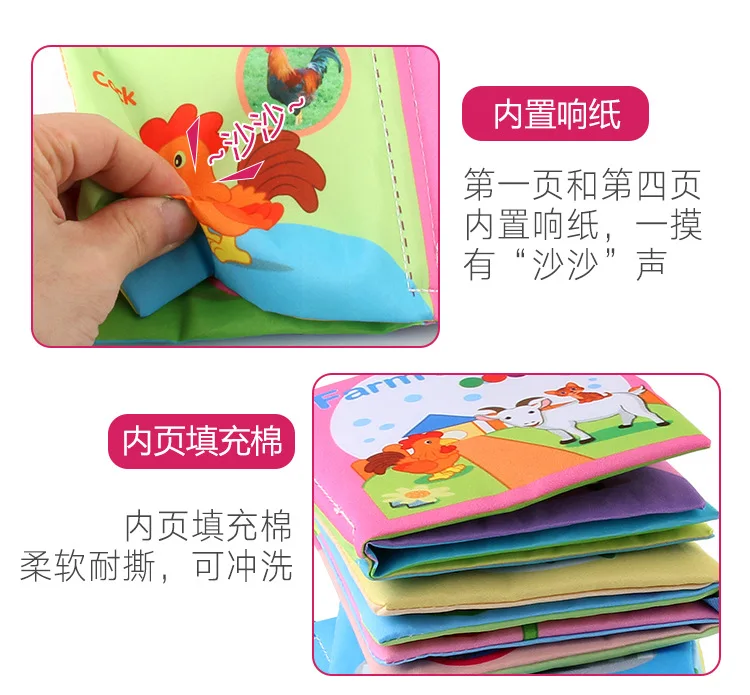 Детская тканевая книга для младенцев Раннее Обучение с животными и ...