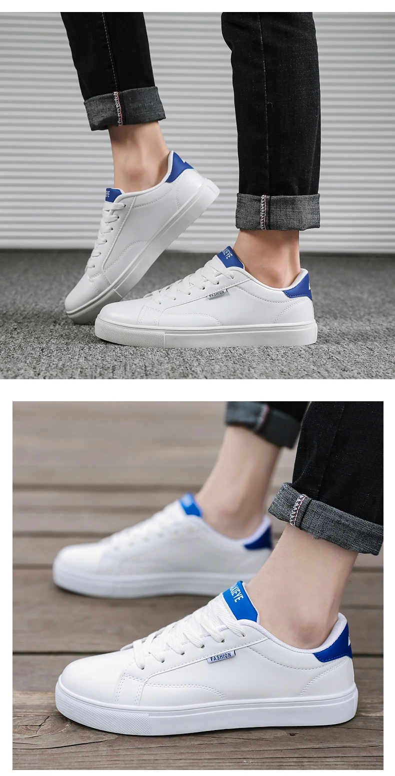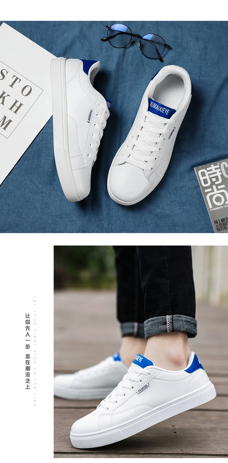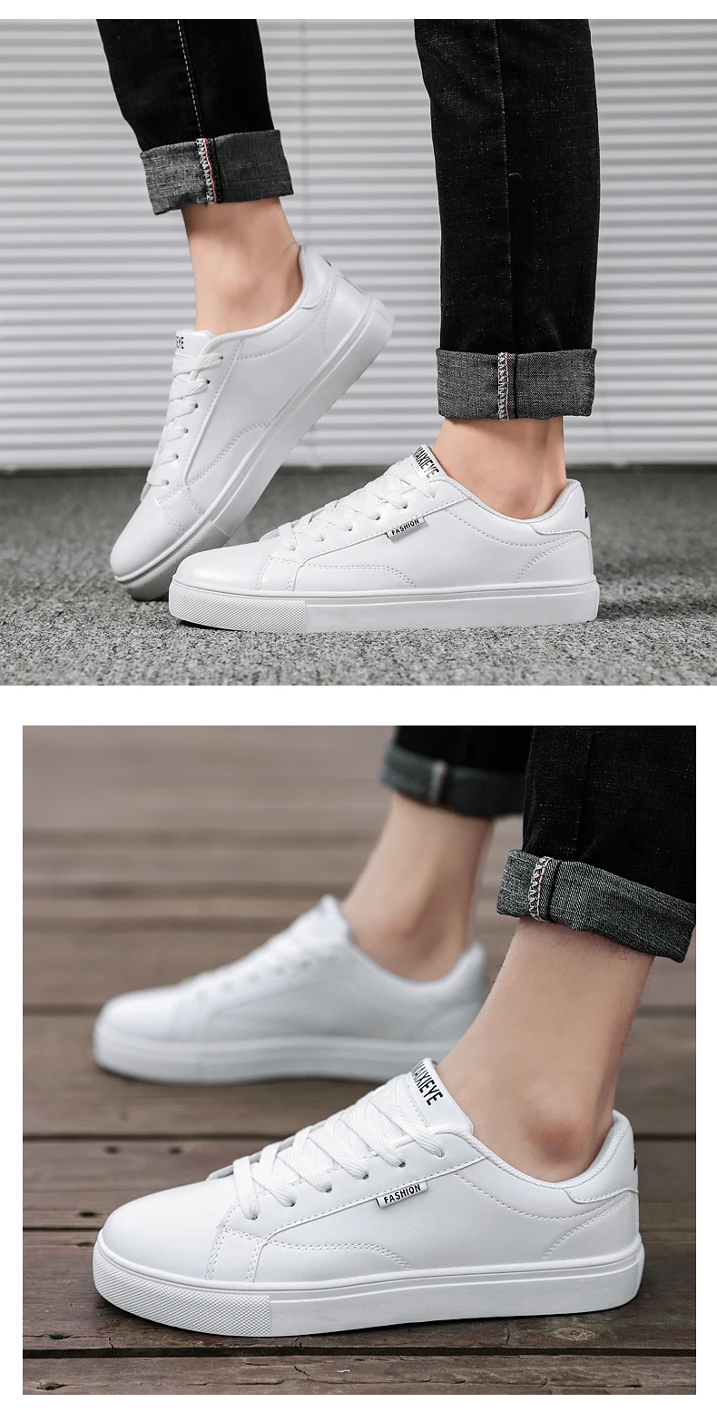Кроссовки мужские легкие кожаные, Вулканизированная подошва, Нескользящие, белые, дешевая обувь