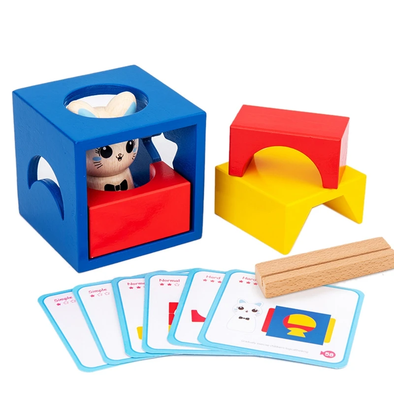 Новый деревянный кролик/кошка Волшебная коробка с секретным кроликом бу спрятать и искать волшебные игры мозговые Прорезыватели игрушки Детские деревянные игрушки подарки
