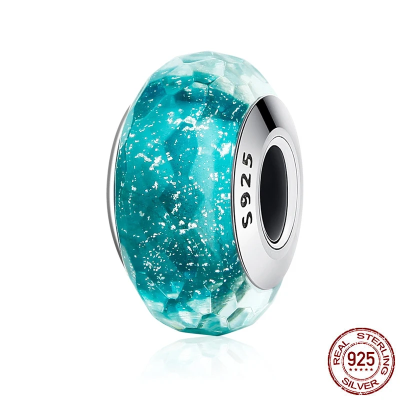 Раздел Изумрудное синее муранское стекло бусины из стерлингового серебра 925 пробы Шарм Подходит оригинальный браслет Pandora Серебро 925 DIY женские ювелирные изделия
