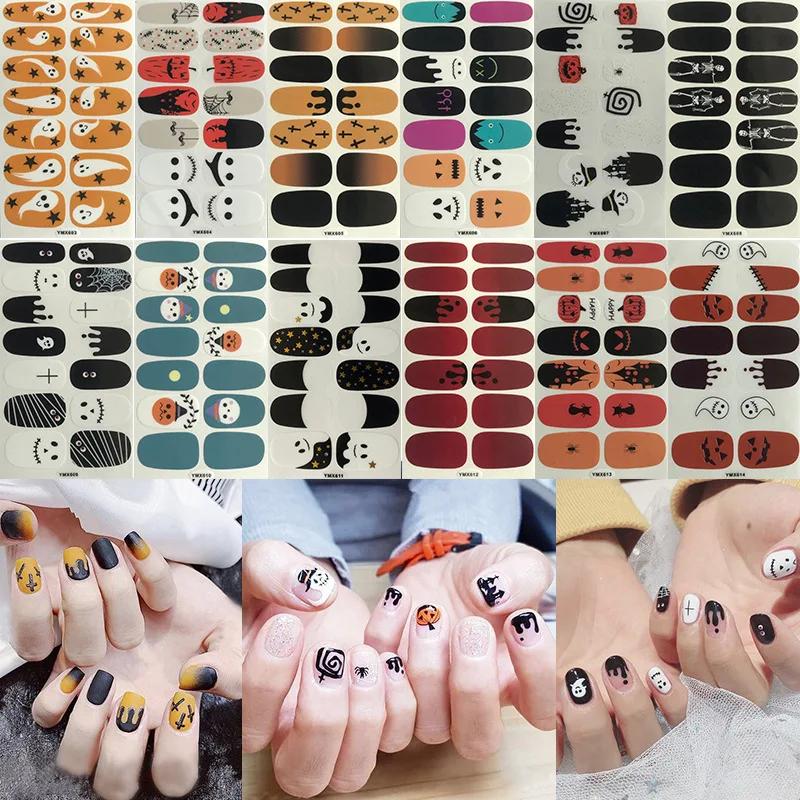 Наклейки для ногтей на тему Хэллоуина, 12 листовнабор, клейкие наклейки, призрачный череп, наклейка "Тыква", аксессуары для самостоятельного украшения ногтей