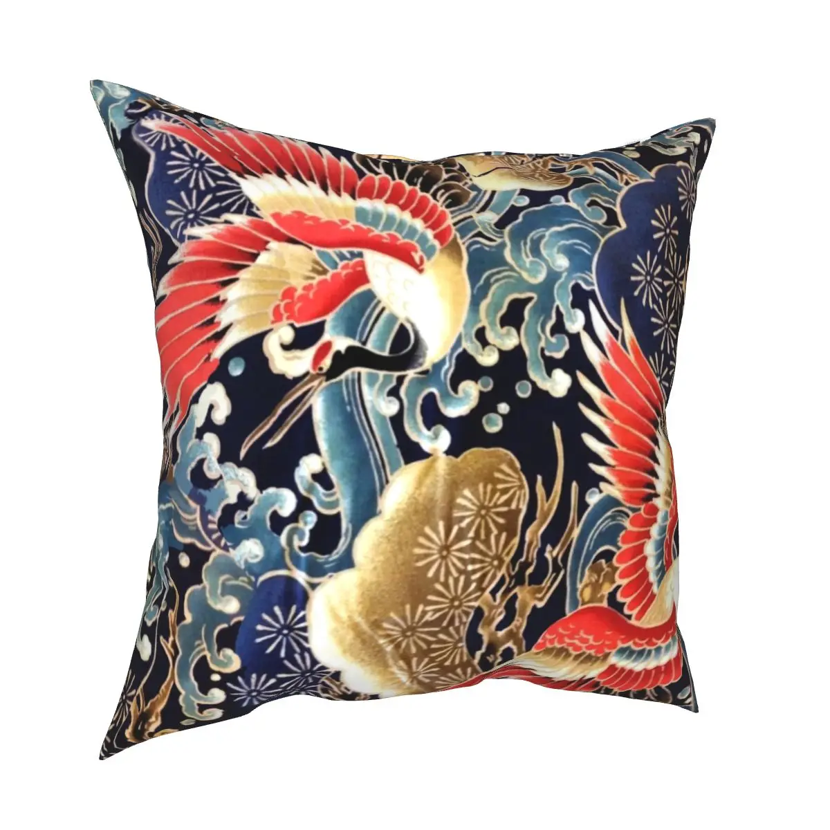 Винтажный чехол для подушки с изображением журавлей цветов волн декоративный чехол для подушки японская азиатская Восточная накидка для подушки Чехол для дома 18 дюймов