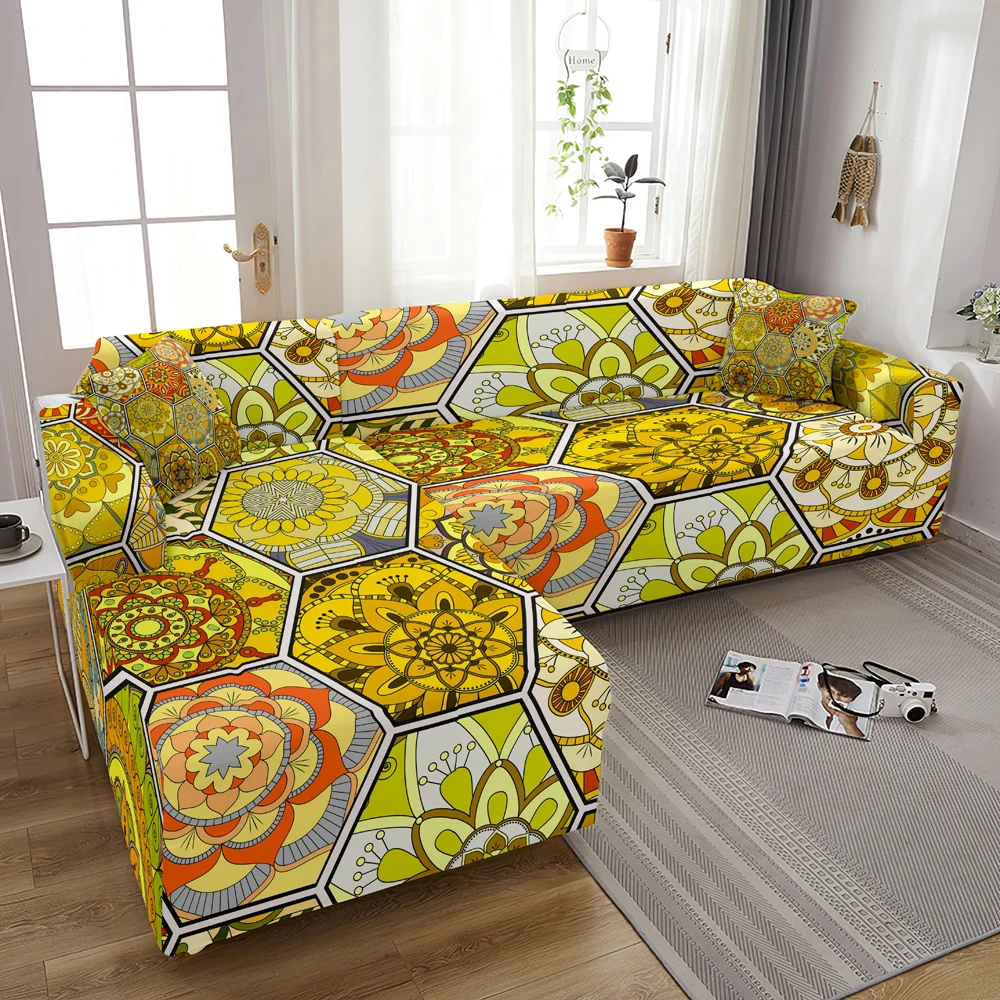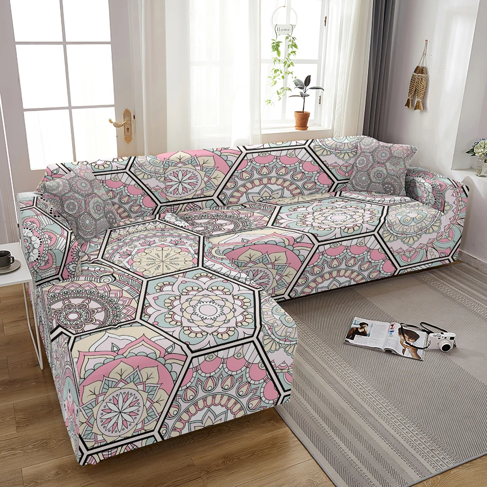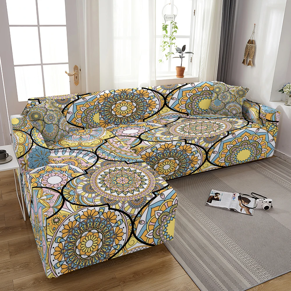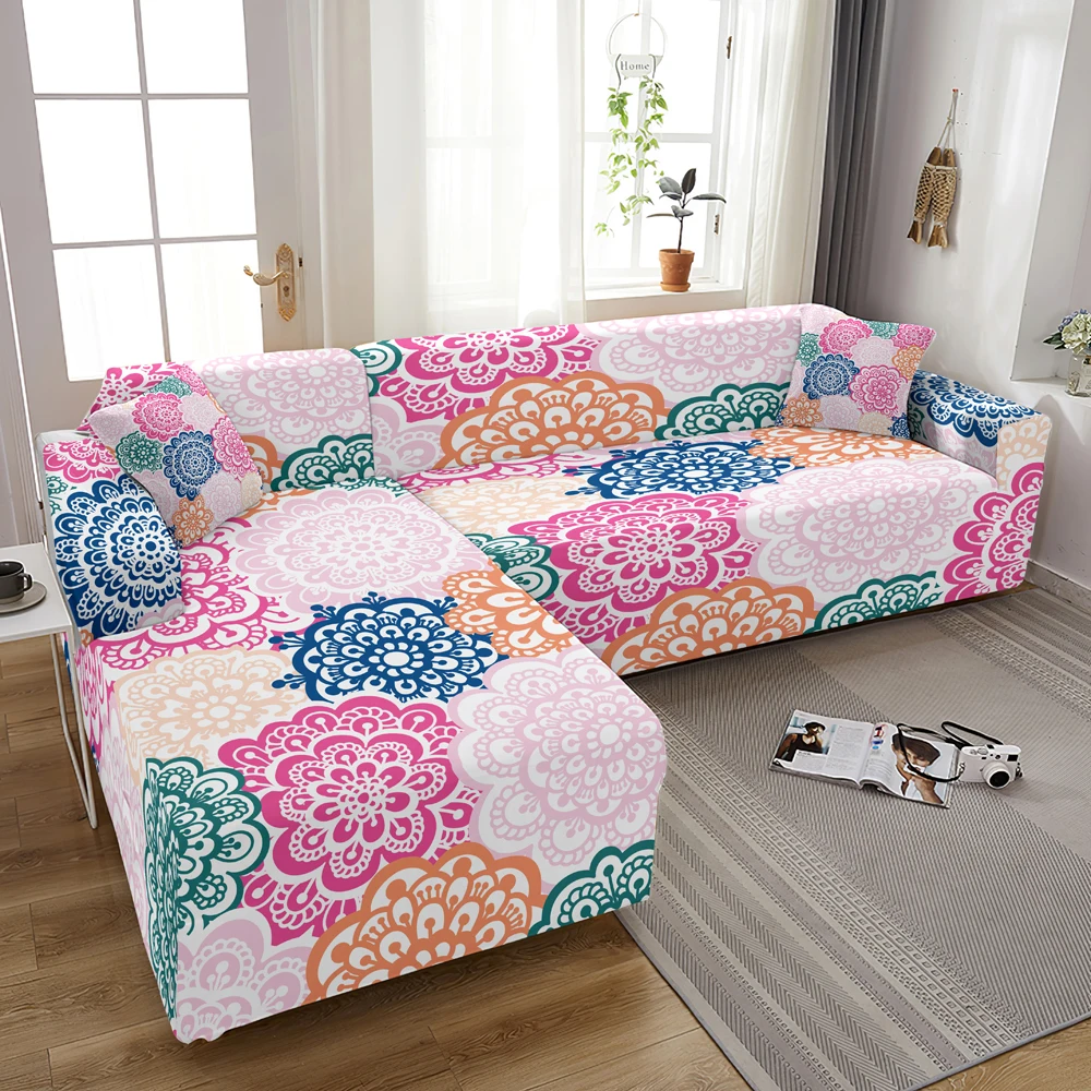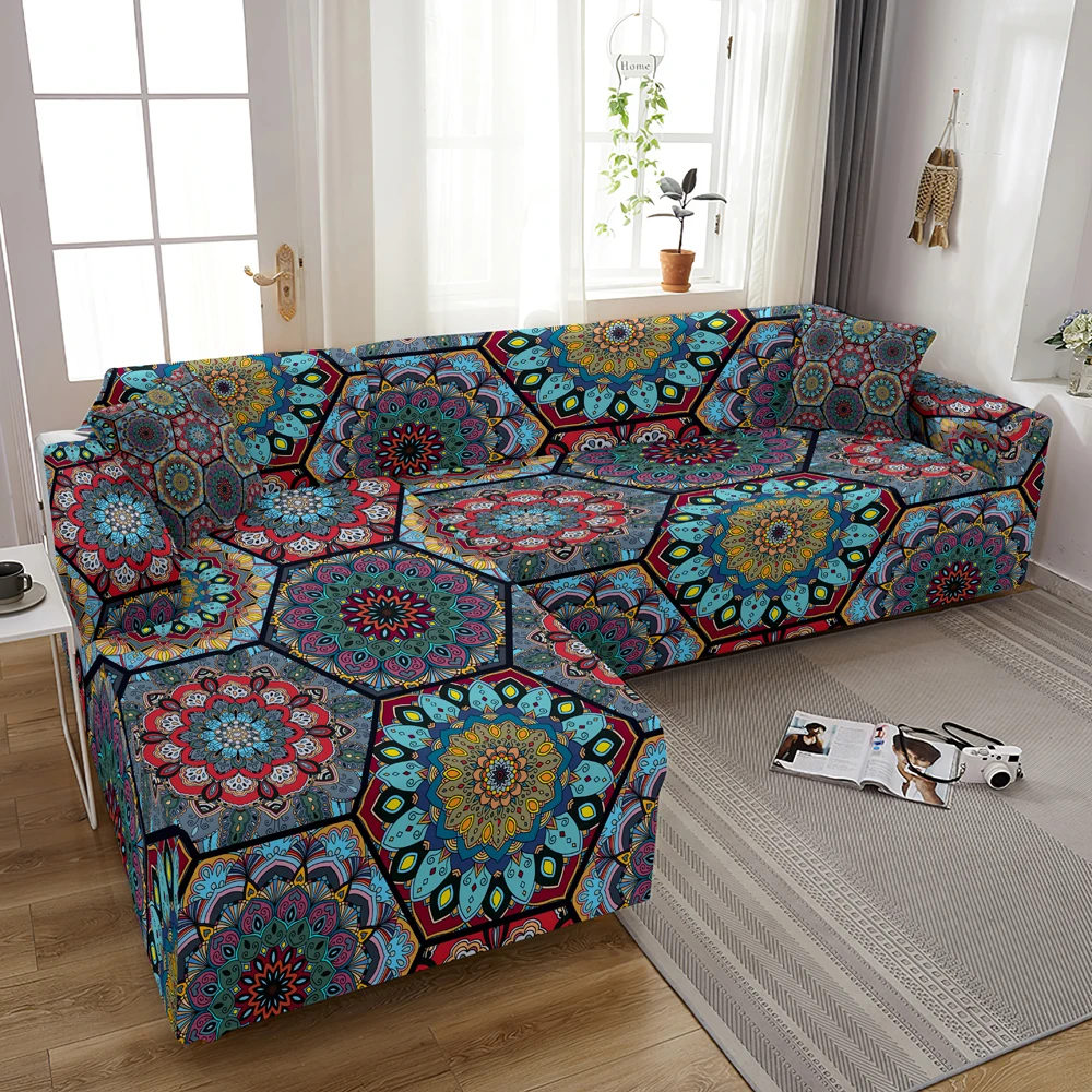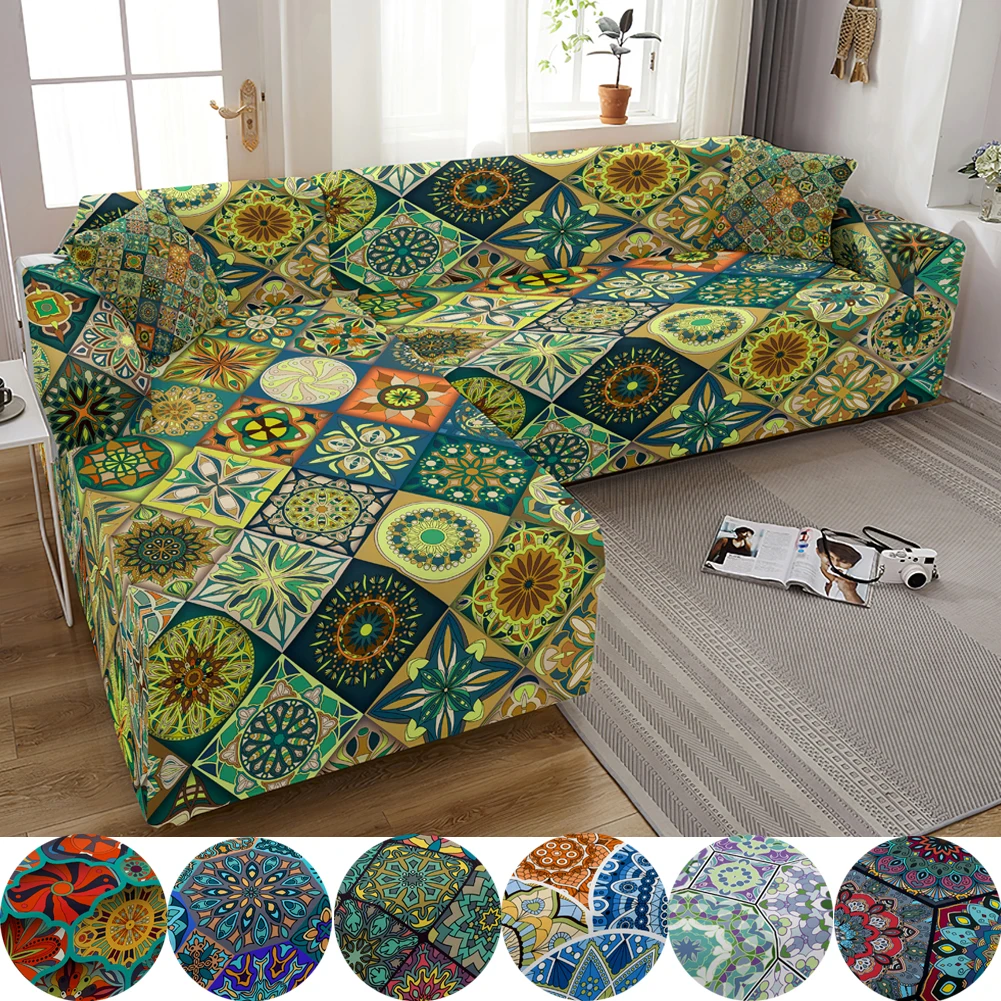 Эластичные Чехлы для дивана в богемном стиле для гостиной, эластичный чехол для дивана с принтом мандалы, L-образный чехол для дивана
