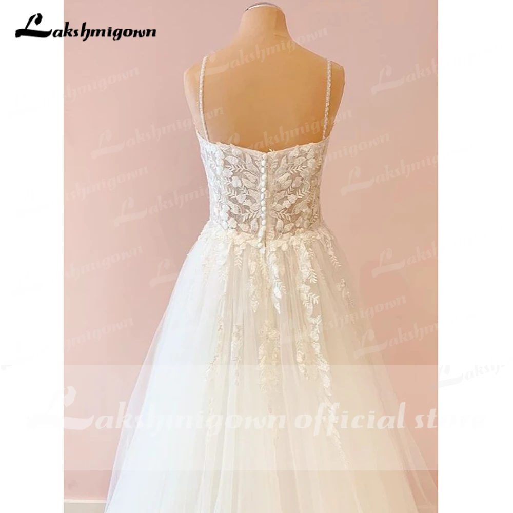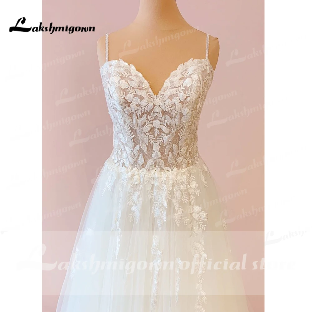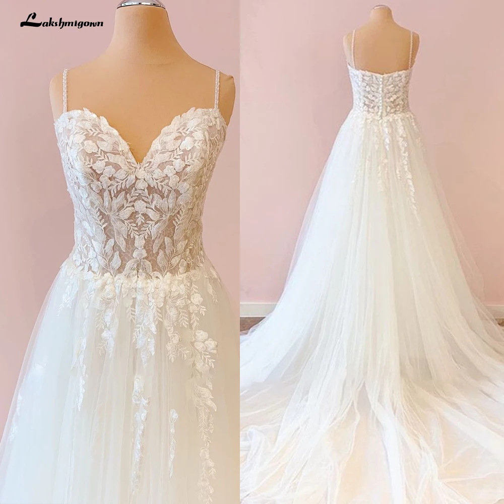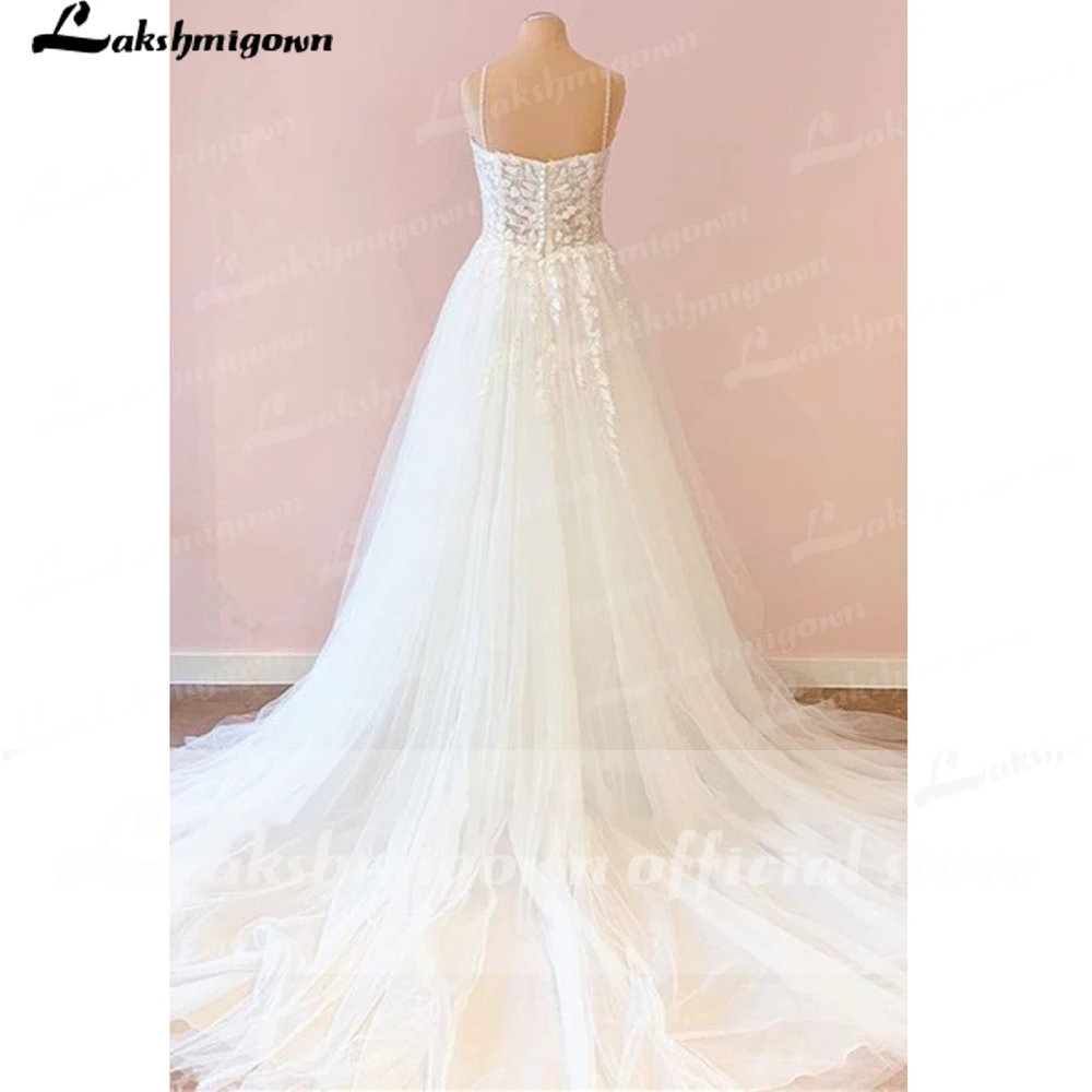 Простое ТРАПЕЦИЕВИДНОЕ свадебное платье на тонких бретельках, женское пляжное платье с V-образным вырезом, кружевное свадебное платье с открытой спиной и шлейфом, 2022