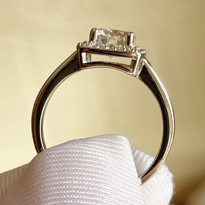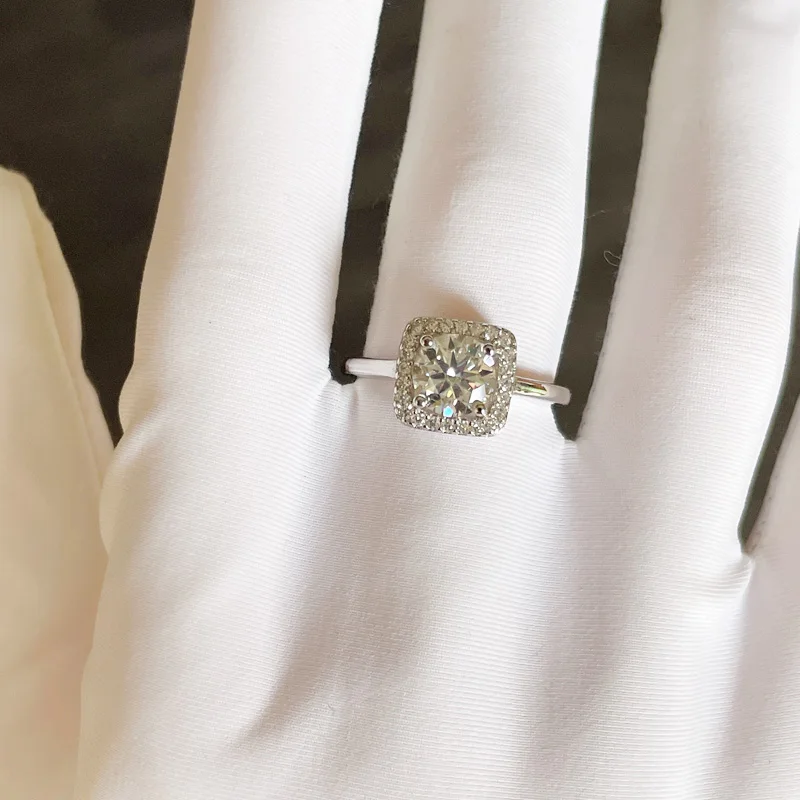 Квадратный дизайн 1 карат стерлингового серебра 925 пробы кольцо с муассанитом D Цвет VVS круглой огранки 1 карат бриллиантовые кольца для женщин Годовщина свадьбы