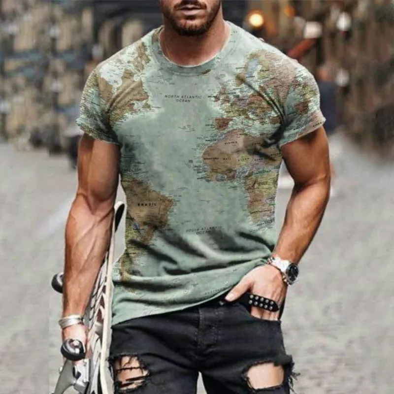 Футболка мужская с принтом карты и круглым вырезом, Повседневная Св...