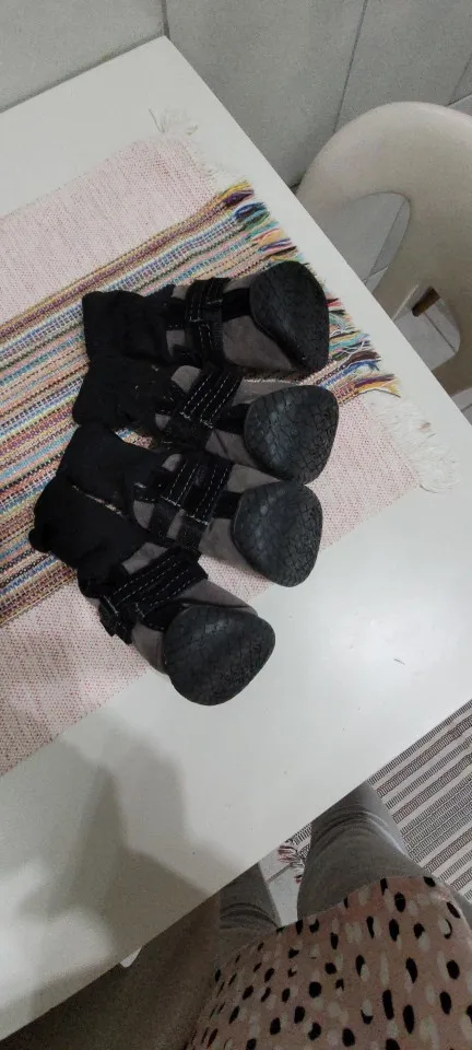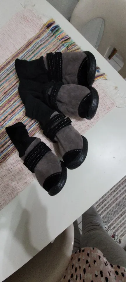 Product Description:Item Type:Pet ShoesMaterial:PolyesterSeason:Autumn,WinterDog Size:Small,MediumTarget Audience:DogsSize(1,width,length):3.5 cm/1.37",4.4 cm/1.73"Size(2,width,length):3.8 cm/1.49",4.7 cm/1.85"Size(3,width,length):4.0 cm/1.57",5.0 cm/1.96"Size(4,width,length):4.4 cm/1.73",5.5 cm/2.16"Size(5,width,length):4.8 cm/1.88",6.0 cm/2.36"Features:1. Humanized design makes it easy for dogs to put on and off. Many dogs don't like to wear shoes. One of the reasons is that they are difficult to wear and take off. This kind of shoes can solve such problems perfectly.2.The Bottom Of The Beef Tendon Is Durable, Wearable, Soft And Comfortable, And It Is Fun To Travel.After A Long Travel,Dog Will Feel Hurt It They Do Not Having Shoes.So The Item Is Also The Perfect Gift For Your Dogs.3.The Waterproof Material With Non-Slip Soles Allows Your Dog To Get Better Control And Protect The Paws From Cold Weather And Objects.4.Made of high and fine quality material-Suede Fabric, which is environment friendly and non-toxic fabric,so the item is not harmful and bad to your dogs.In winter,this fabric can help dog feel warm and they will decrease the chance to be sick.5.There are three colors you can choose according to your hobby.And before you buy this item,please ensure you have measuring the size of your dog claws,which is for giving them a comfortable wearing experience.Package Include:4 x pet shoesNotes:1. Please allow 1-3 cm difference due to manual measurement and 3-5 g for the difference between different colors.2. Due to the screen difference, the color may be a little difference from what you expect, please allow it.