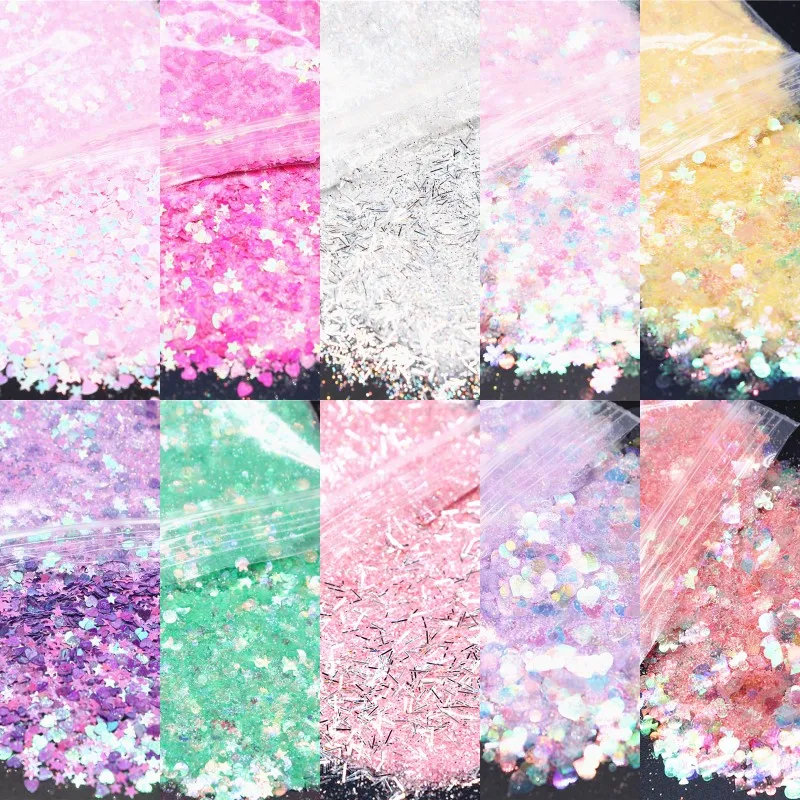 10 млфляга для ногтей, блестки, звезда, Луна, снежинка, формы, блес...