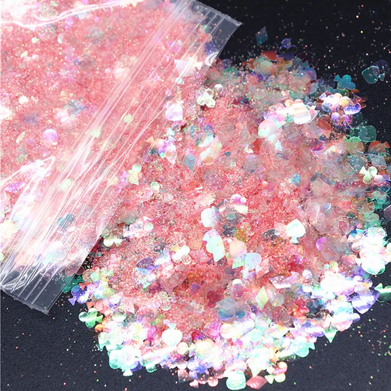 Блестящие хлопья для дизайна ногтей, пудра, блестки, блестки, смешанные тонкие крупные Блестки для украшения маникюра