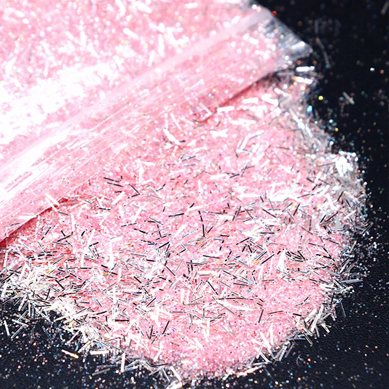 Розовый милый 3D Блеск для ногтей Блестки Блестящий голографический...