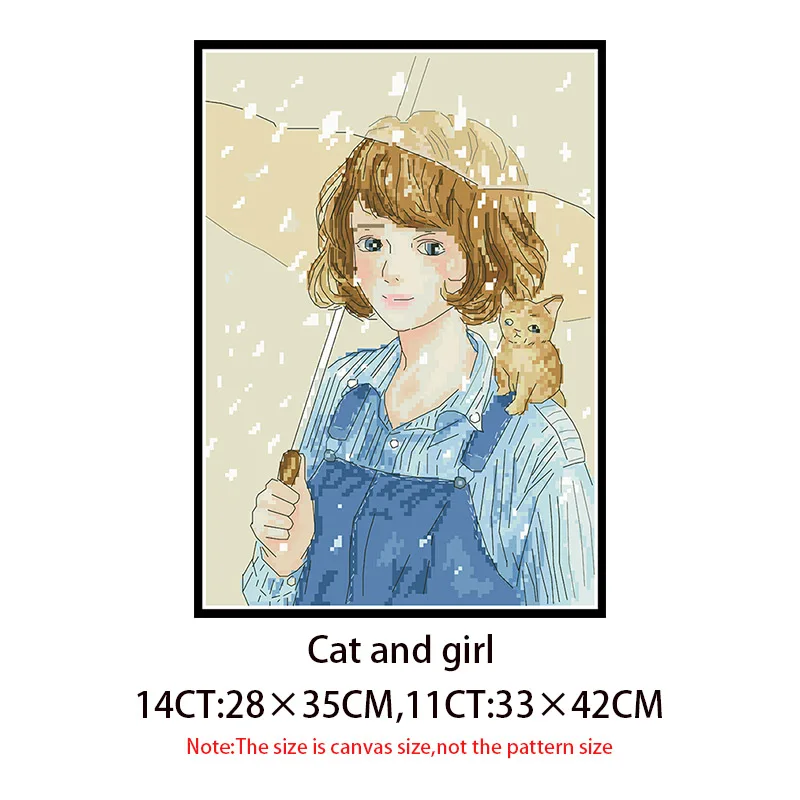 Кот и девочка, вышивка крестиком, напечатанный холст, наборы для вышивания, сделай сам, наборы для рукоделия, 11CT, 14CT, ткань для шитья, ремесла, домашний декор, картины