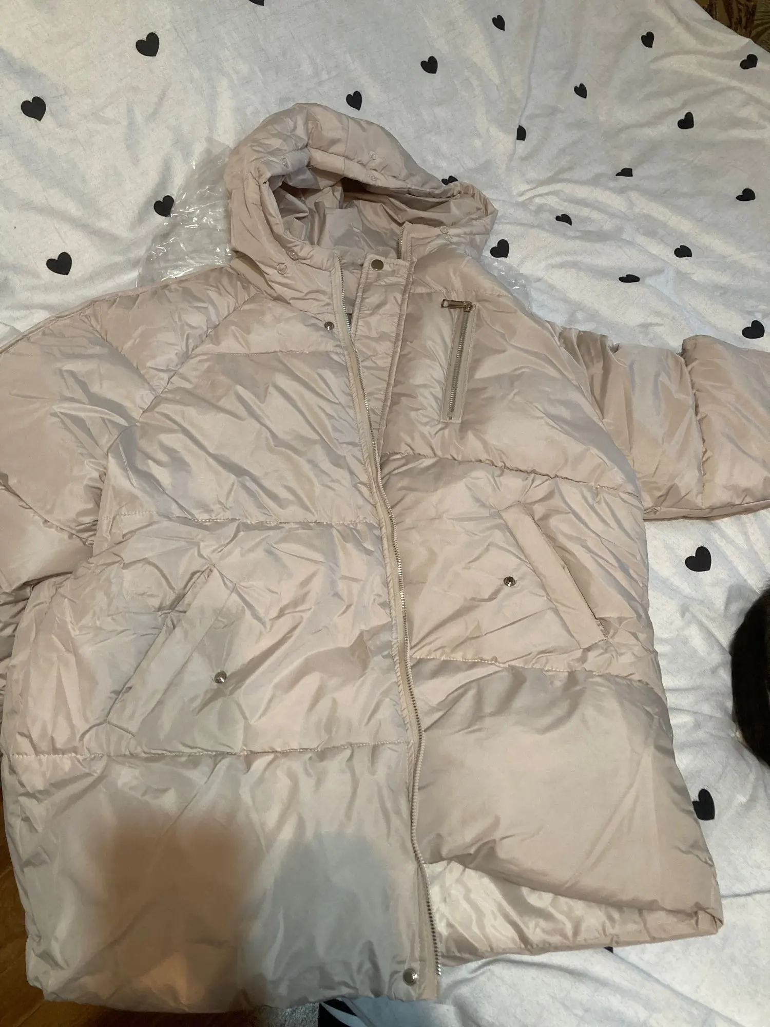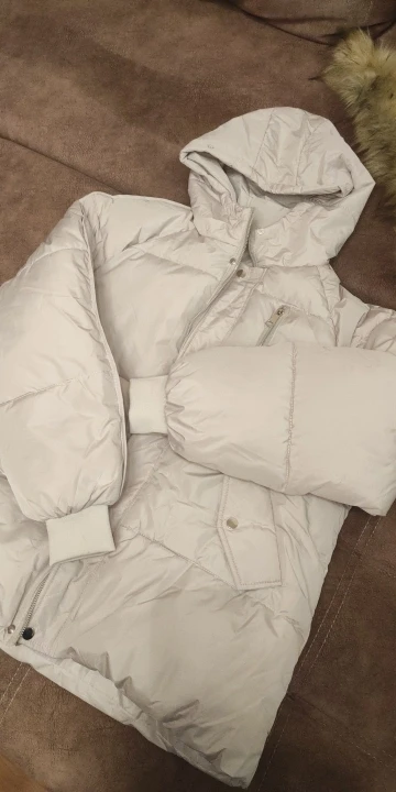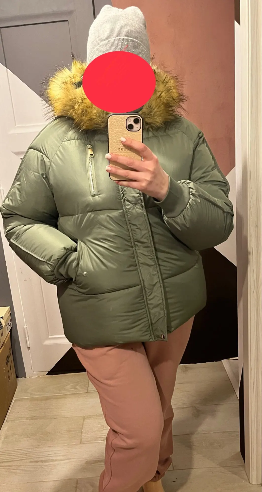 Куртка очень крутая,дутая. Размер оверсайз, заказала s, но на мой размер 40 рост 163 большевата, но я ее могу оставить сестре,которая выше и больше меня. Верхний карман слева выполнят больше декоративную функцию, пух и куртка были упакованы отдельно.