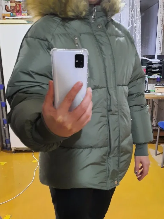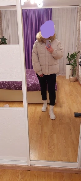 Куртка отличная, на тёплую зиму до -15. Немного удлинённая, все что нужно прикрывает.) Большемерит. Брала s, рост 155, с худи в самый раз. Мех на пуговках, снимается. Капюшон сильно не набит. Один минус мех сшит с бежевым подкладом, немного видно, но если добавить пару пуговиц ничего видно не будет.