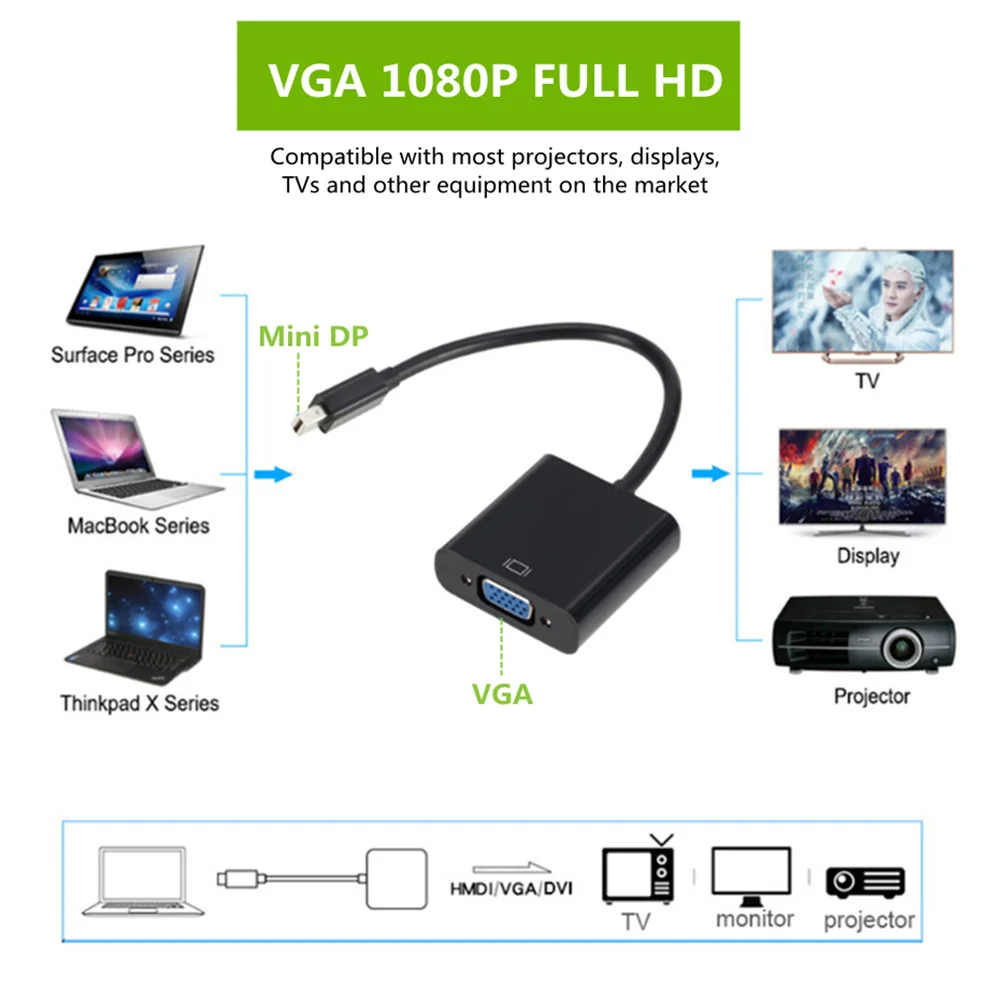 Мини-порт дисплея, порт дисплея Mini DP к VGA, Кабель-адаптер 1080P для HDTV монитора для MacBook Air Pro iMac Mac Mini DP к VAG