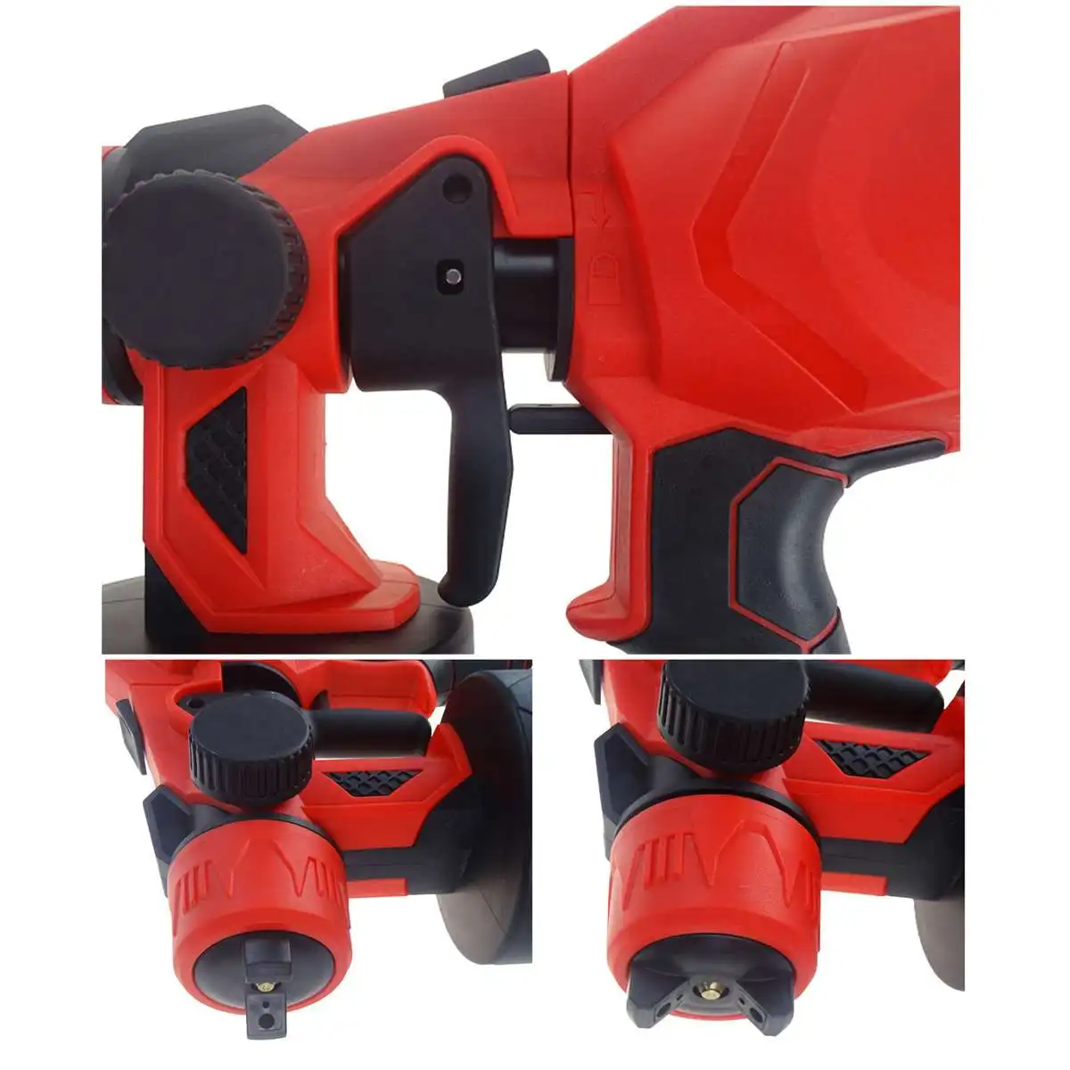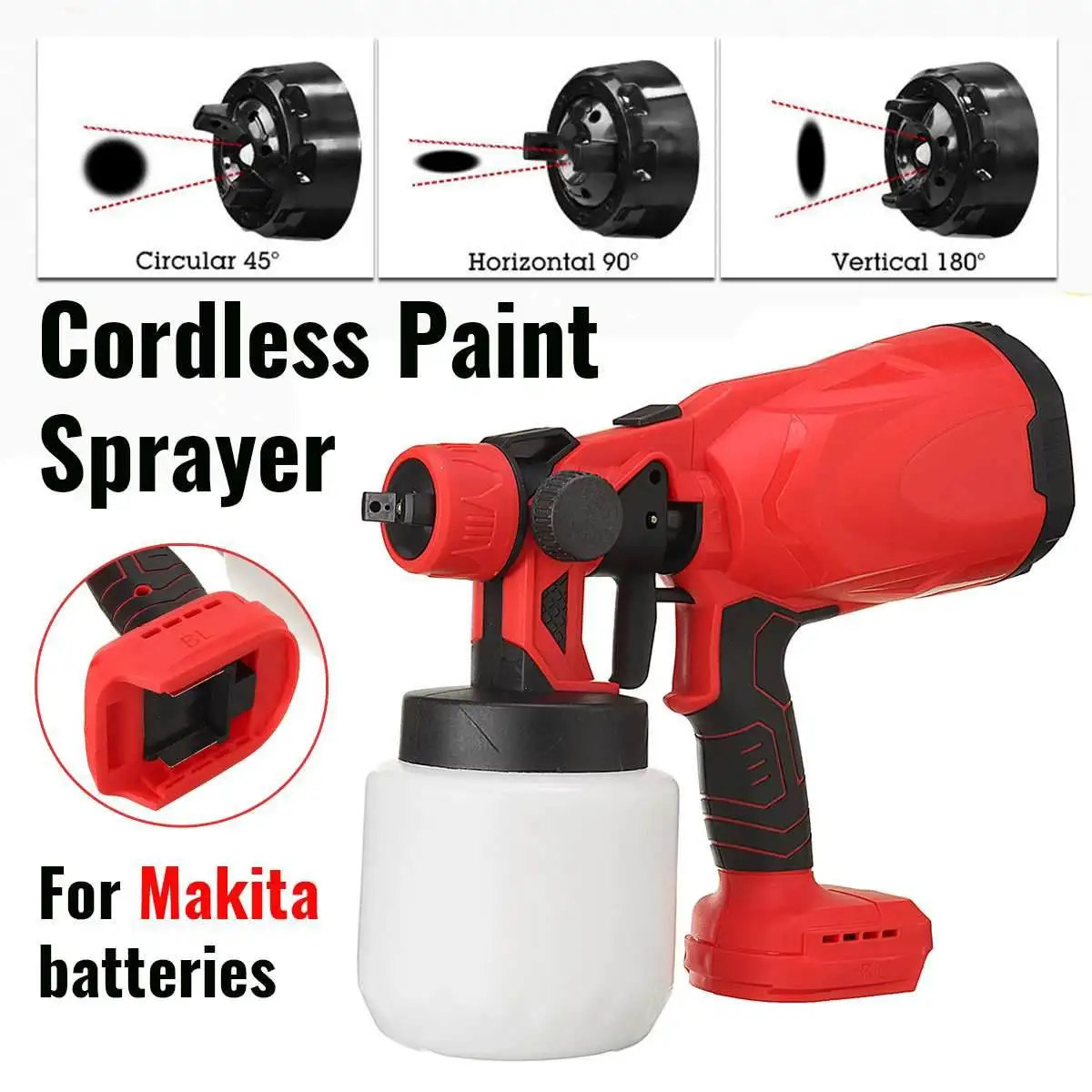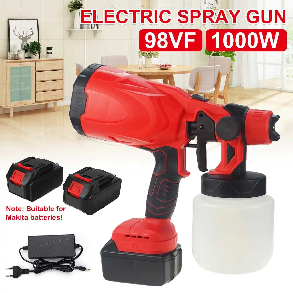 Посылка включает #1:1 x Электрический пистолет-распылительПосылка включает #2:1 x Электрический пистолет-распылительАккумулятор-1 шт.Зарядное устройство-1 шт.Посылка включает #3:1 x Электрический пистолет-распылитель2 батареиЗарядное устройство-1 шт.Спецификация:Цвет: красный + черныйМатериал: пластикМетод подачи краски: Тип всасыванияБатарея: для батареи MakitaРасстояние распыления: 100 ммОбъем распыления краски: 30 мл/сСопло Калибр: 1,8 ммВатт: 1000 ВтВольт: 98vfВилка: штепсельная вилка европейского стандартаОсобенности:-Быстро Охладите Впускное отверстие и отвод тепла, чтобы облегчить отведение тепла и обеспечить срок службы машины-Одноклавишный переключатель, более безопасный и удобный источник питания с эргономичным дизайном-Регулятор регулировки может более эффективно регулировать скорость потока сопла, регулировать в соответствии с вашими потребностями и экономить материалы-Три модели распыления: круглые, вертикальные и горизонтальные. Вы можете выбрать рисунок, чтобы разогнать краску в желаемом пути-Широкий спектр применений, подходит для покраски дверей, окон, стен, ограждений, полов, потолков, полов, шкафов, бытовой мебели и других предметов.