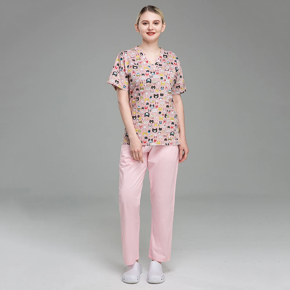 Новая разноцветная хлопковая Униформа с принтом животных и цветов, униформа для салона красоты и кормления, униформа для домашних животных, рабочая одежда