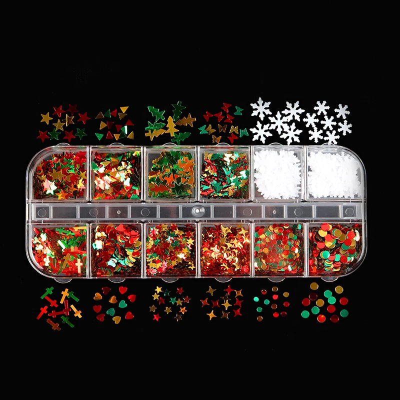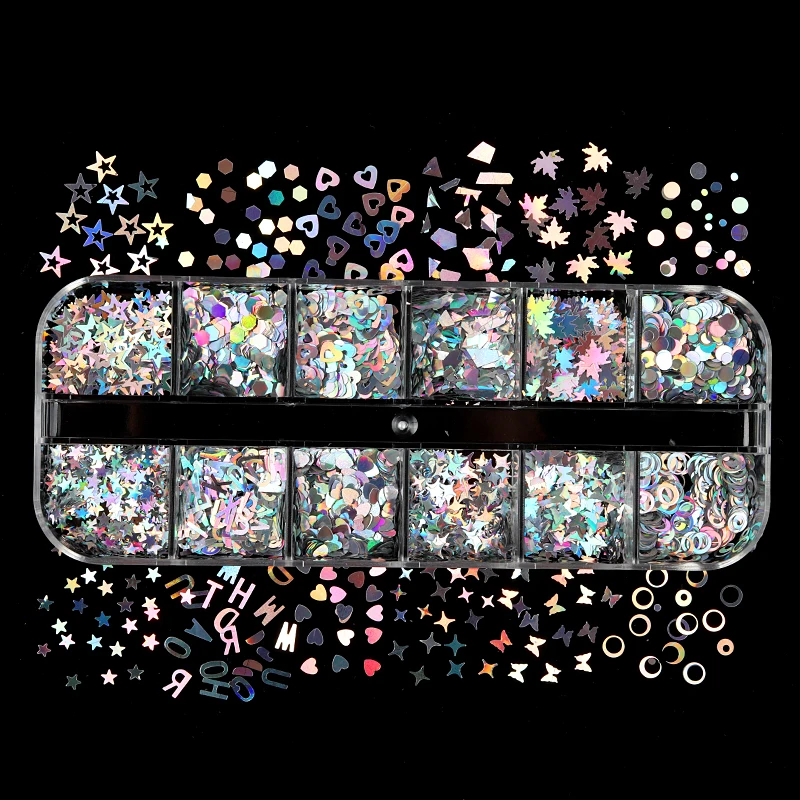 Блестки для ногтей, 12 ячеек