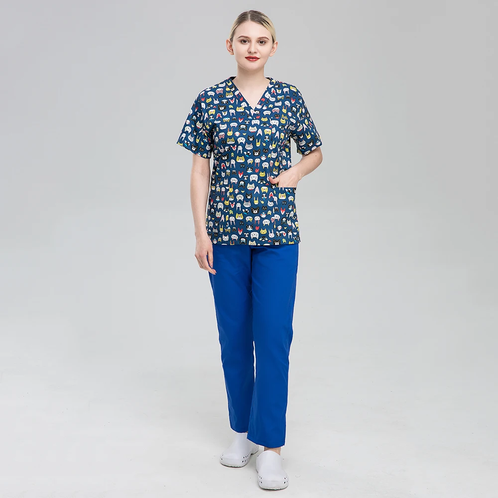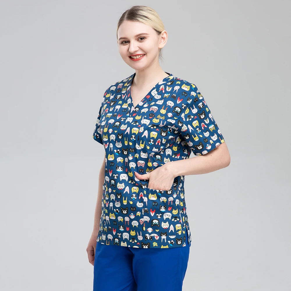 Scrubs tops Cute Cartoon printing Kindergarten teacher workwear pet...