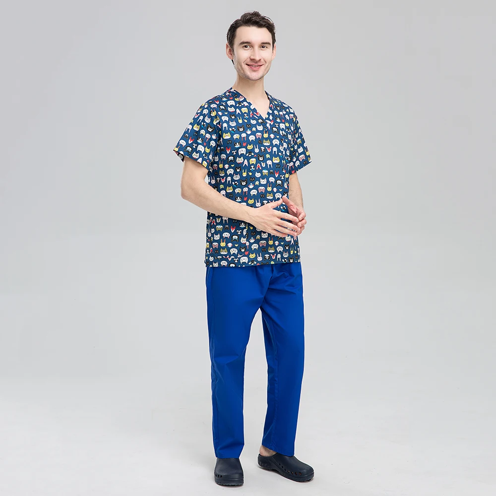 Одежда для хирургии с принтом животных, хлопковая медицинская одежд...