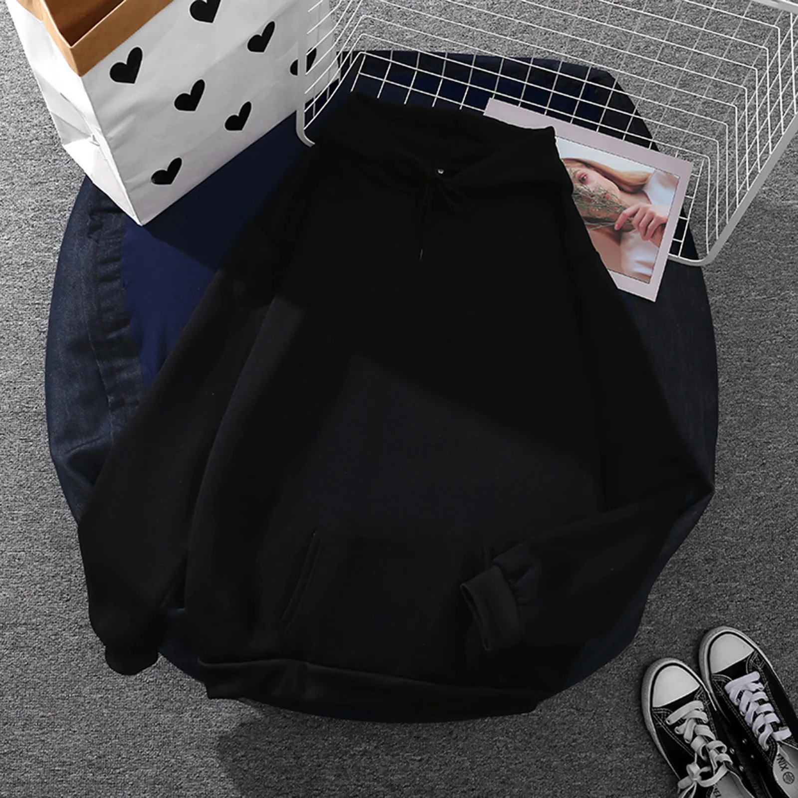 Пуловер женский, с капюшоном, однотонный, с длинным рукавом