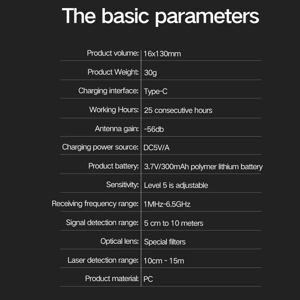 Описание товараОписание1. T8 detector использует передовые немецкие технологии, направленные на различные виды машинок, трекеров автомобилей, мобильный телефон под прикрытием программного обеспечения, беспроводные камеры pinhole, устройства для казино и других продуктов, а также разработанные напрямую средства безопасности и защиты. В то же время, Электрический измеритель радиации может защитить вас и вашу семью от повреждения электромагнитного излучения.2. Этот продукт лидирует в применении цифрового режима приема, который отличается от всех продуктов на рынке. Он не только расширяет частоту управления и измерения, но и эффективно предотвращает помехи сжимаемых сигналов во всем мире и значительно улучшает чувствительность.3. Также имеется динамическая Регулировка сверхбольшой чувствительности. Независимо от того, насколько сильный источник сигнала передает, он может быть легко расположен, регулируя ручку.4.T8 является самым передовым портативным беспроводным оборудованием для обнаружения сигналов, особенно для специальной обработки сигналов CDMA. Обычные радиоволновые детекторы не могут обнаруживать сигнал CDMA. Вы можете проверить чувствительность детектора, позвонив на телефонную карту телекоммуникации.5. Мобильный протокол CDMA-это Технология радиочастотной скачки, изобретенная США. Это светодиодный модуль cal с кодовым разделением, несколько входов (CDMA), и его мощность передачи очень низкая и не легко обнаруживается обычными беспроводными детекторами.6. Наиболее часто используемыми продуктами отслеживания и позиционирования на рынке являются карты CDMA; Поэтому T8-ваш лучший выбор. Особенности1. Профессиональное радио устройство обнаружения волн с высокой чувствительностью, регулируемым порогом и широким диапазоном обнаружения.2. Только выключатель питания + ручка чувствительности, простота в эксплуатации, простота в использовании, звуковой сигнал и светильник с сигнализацией, точный и надежный.3. Он может обнаруживать eavesdroppers и локаторы, оснащенные мобильными, unicom, телекоммуникациями, 2G.3G.4G картами.4. Локатор способен обнаруживать высокоскоростную загрузку пакетов данных GPS позиционера.5. 1,2G/2,4G Беспроводная камера может быть обнаружена.6. Не могли бы вы detectmore скрытый 5,8 ГГц беспроводная камера, беспроводной прослушивания. Применение1. Независимо от того, оснащен ли автомобиль или офис беспроводными машинами или локаторами слежения.2. Если мобильный телефон подслушивается или является ненормальным (режим ожидания должен отправлять сигналы без причины.3. Рабочая среда, есть ли радиация базовой станции на крыше жилого здания.4. Мобильный короткий прием и отправка сообщений, доступ в Интернет и мониторинг вызовов.5. Беспроводная сеть, мобильная базовая станция, мониторинг беспроводной системы мониторинга.6. Обнаружение утечки электромагнитного излучения в бытовых приборах, таких как микроволновые печи.7. Есть ли подозрительные беспроводные сигналы в окружающей среде.8. Проверьте ванные комнаты, гостиницы, развлекательные места, гардеробные, государственные органы,И т. д.9. Деловые переговоры, инспекция школ, мастерских, объектов.10. Радиоволны совпадают с движениями на столах Маджонга.11. Ипотекный автомобиль, Подержанный автомобиль, ломбард, гарантийная компания, микро-Кредитная компания, компания по информационным кр
