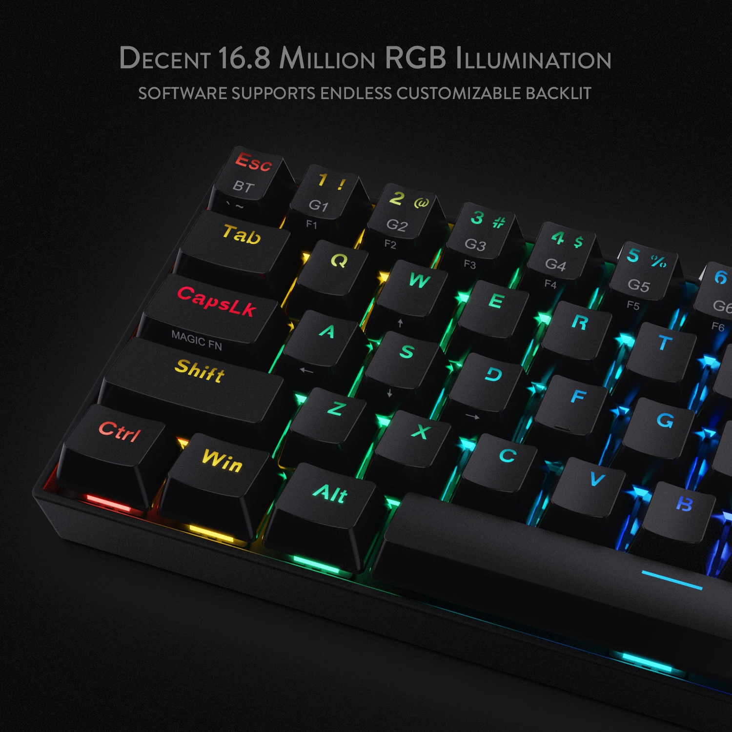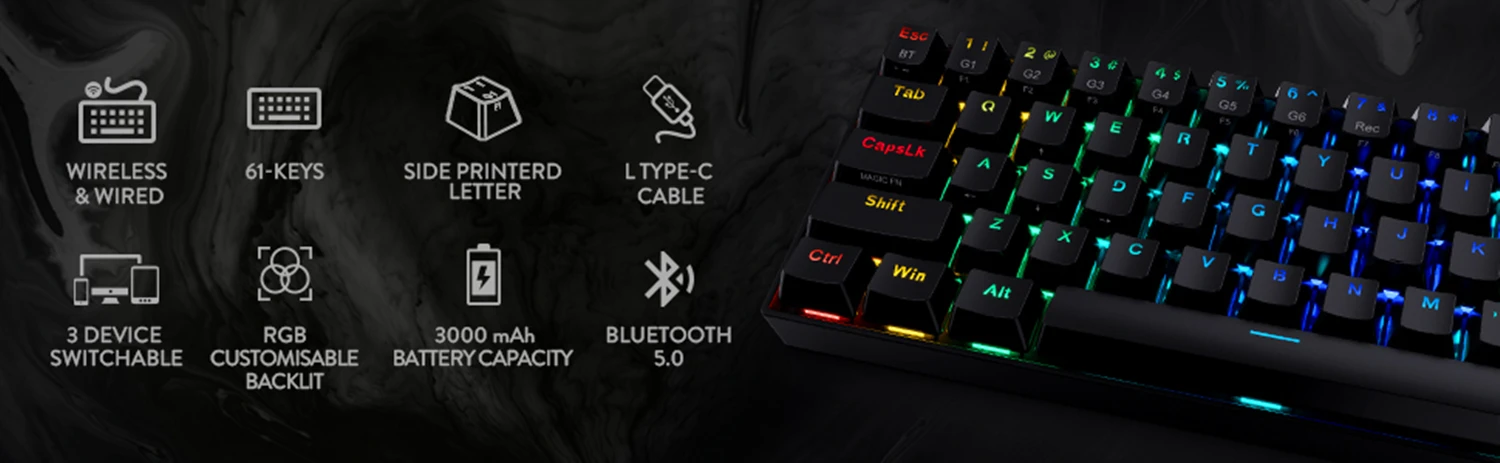 Ультра минималистичный дизайн tenkeyless (TKL) с переносным макетом 61 клавиши освобождает место стола для движения мыши, что обеспечивает самую чистую производительность для FPS pro.