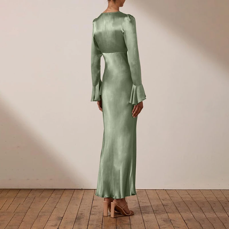 Осеннее женское дневное платье 2022, Элегантное Атласное длинное ру...