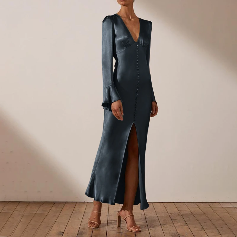 Элегантное атласное женское платье макси Celmia осень 2022 длинная ...