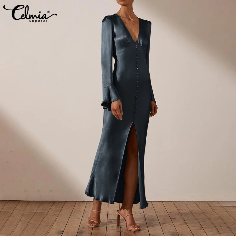 Женское атласное платье Макси Celmia, Осеннее Элегантное Длинное Пл...