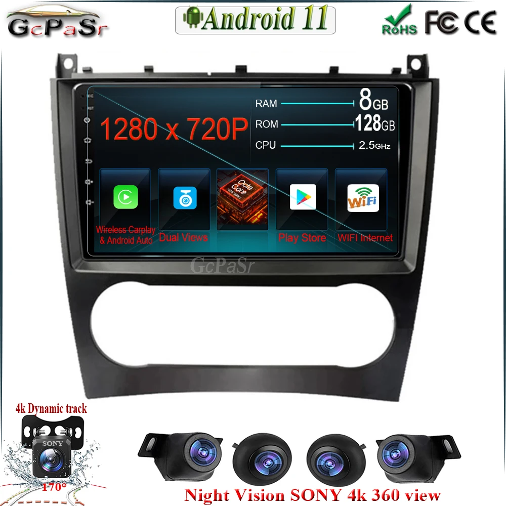 Автомобильный радиоплеер с двумя объективами Android 11 для Mercede...