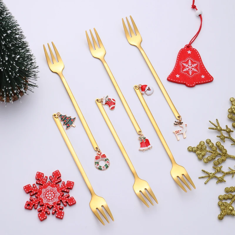6 шт. рождественские украшения, кофейная ложка, вилка из нержавеюще...