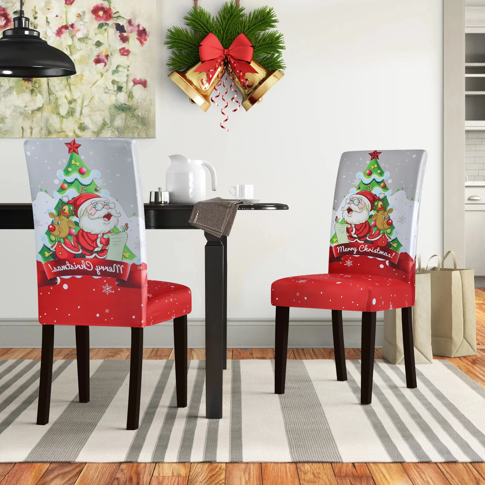 Рождественское эластичное покрытие для обеденного стула с принтом, ...