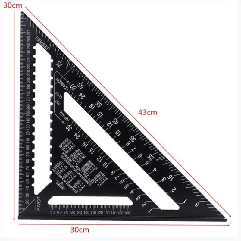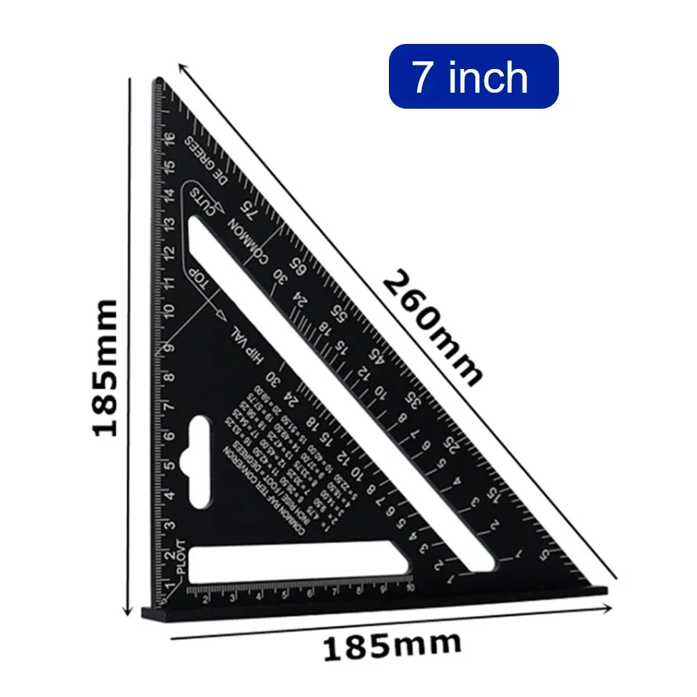 Треугольная линейка 7/12 дюймов, угловой транспортир из алюминиевого сплава, Метрическая квадратная измерительная линейка для строительных рам, инструменты, датчики