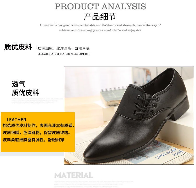 [Быстрый возврат] Мужская коричневая кожаная обувь; Деловой стиль; Обувь для волос; Обувь для отдыха в британском стиле; Дышащая корейская мода; Сезон весна-осень; Цвет Черный