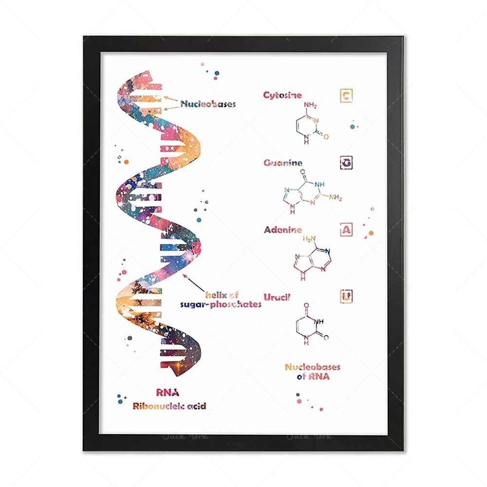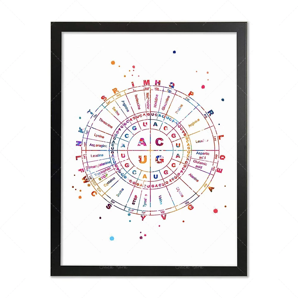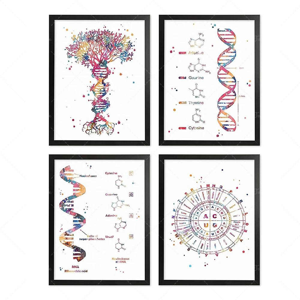 Набор плакатов с генами ДНК-кодом акварелью, офисное украшение с ДНК-деревом, научное искусство на стену, биология, искусство, генный код, круг, художественная химия