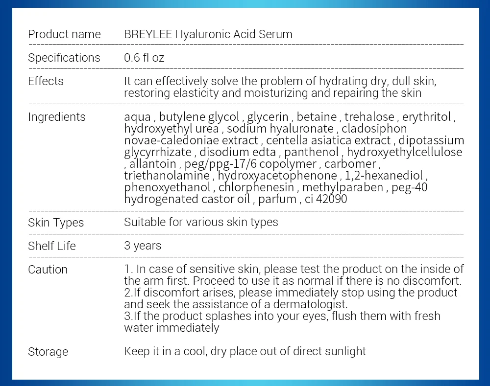 Название продукта: сыворотка брейли хвалуроновой кислоты
