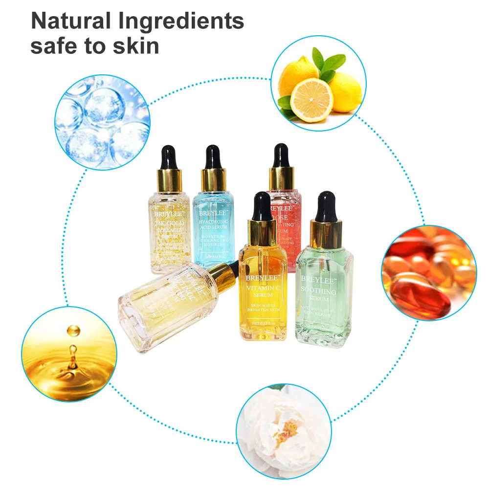 Набор для ухода за кожей BREYLEE, сыворотка с гиалуроновой кислотой и витамином C, Отбеливающая увлажняющая эссенция для ретинола и розы, антивозрастной уход за кожей