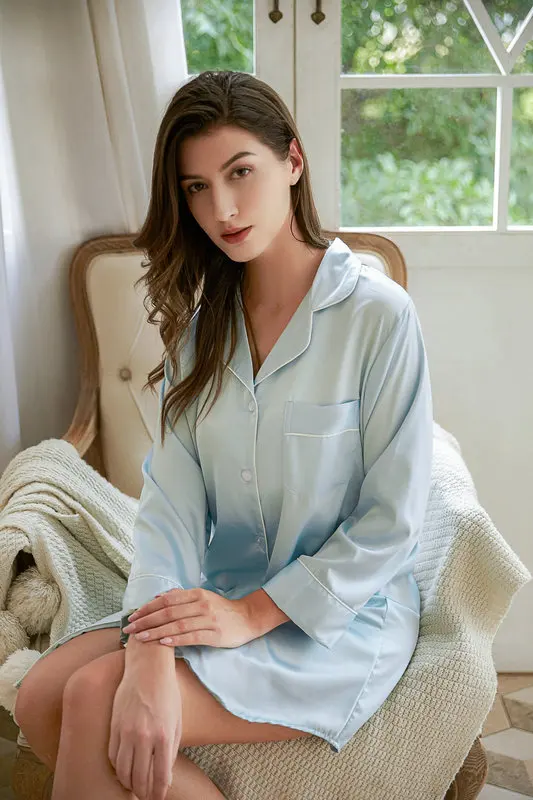 Атласная Шелковая пижама с длинным рукавом, платье-рубашка, ночная рубашка подружки невесты, свадебные подарки, домашний халат, женская пижама, шелковый халат, рубашка для сна