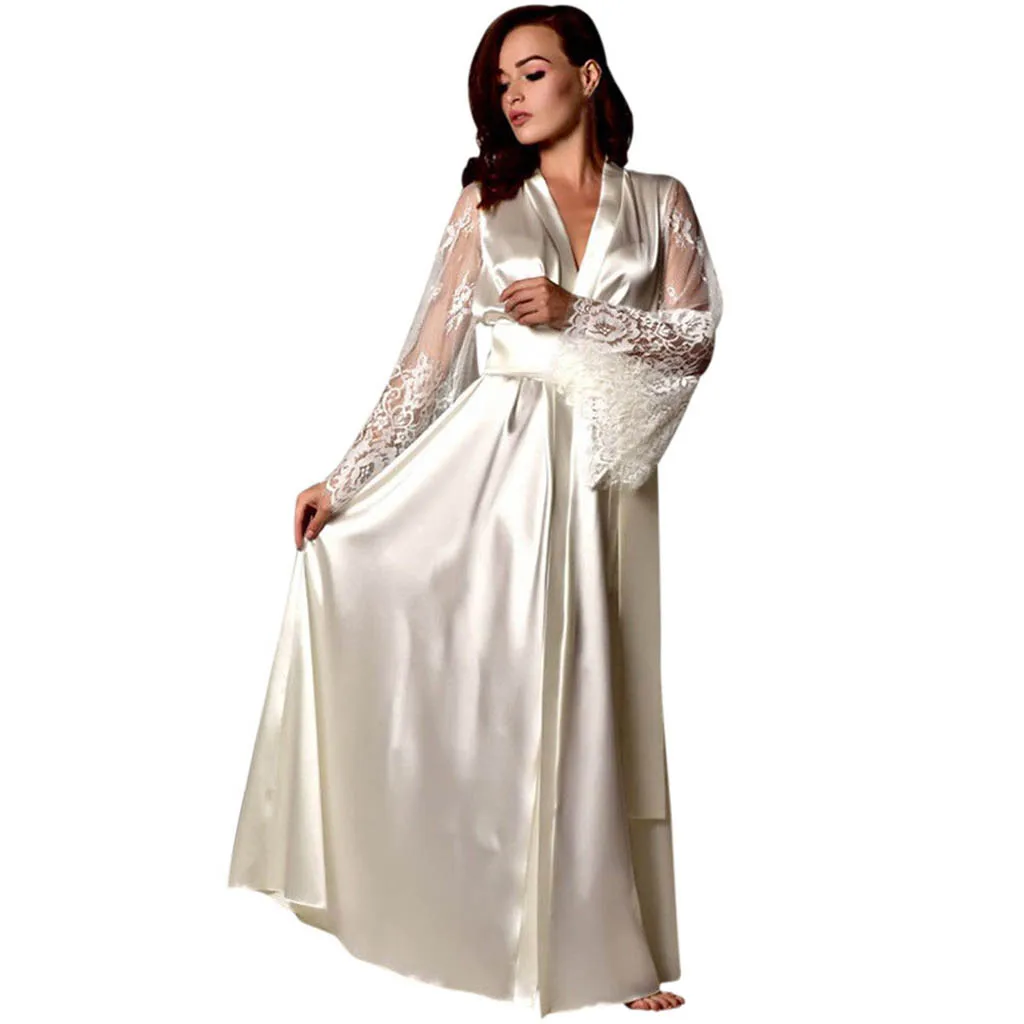 Женская атласная длинная ночная рубашка, шелковое кружевное нижнее белье, ночная рубашка, пикантный Халат