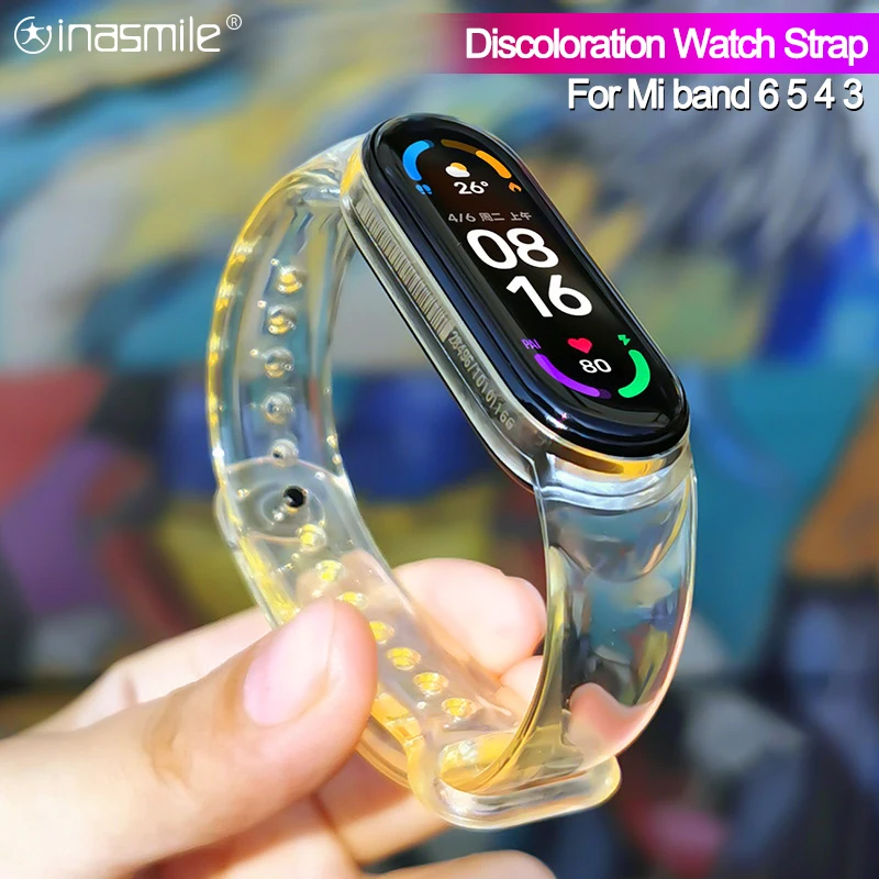 Силиконовый ремешок для часов, изменяющий цвет, для Xiaomi Mi Band 3, 4, 5, 6