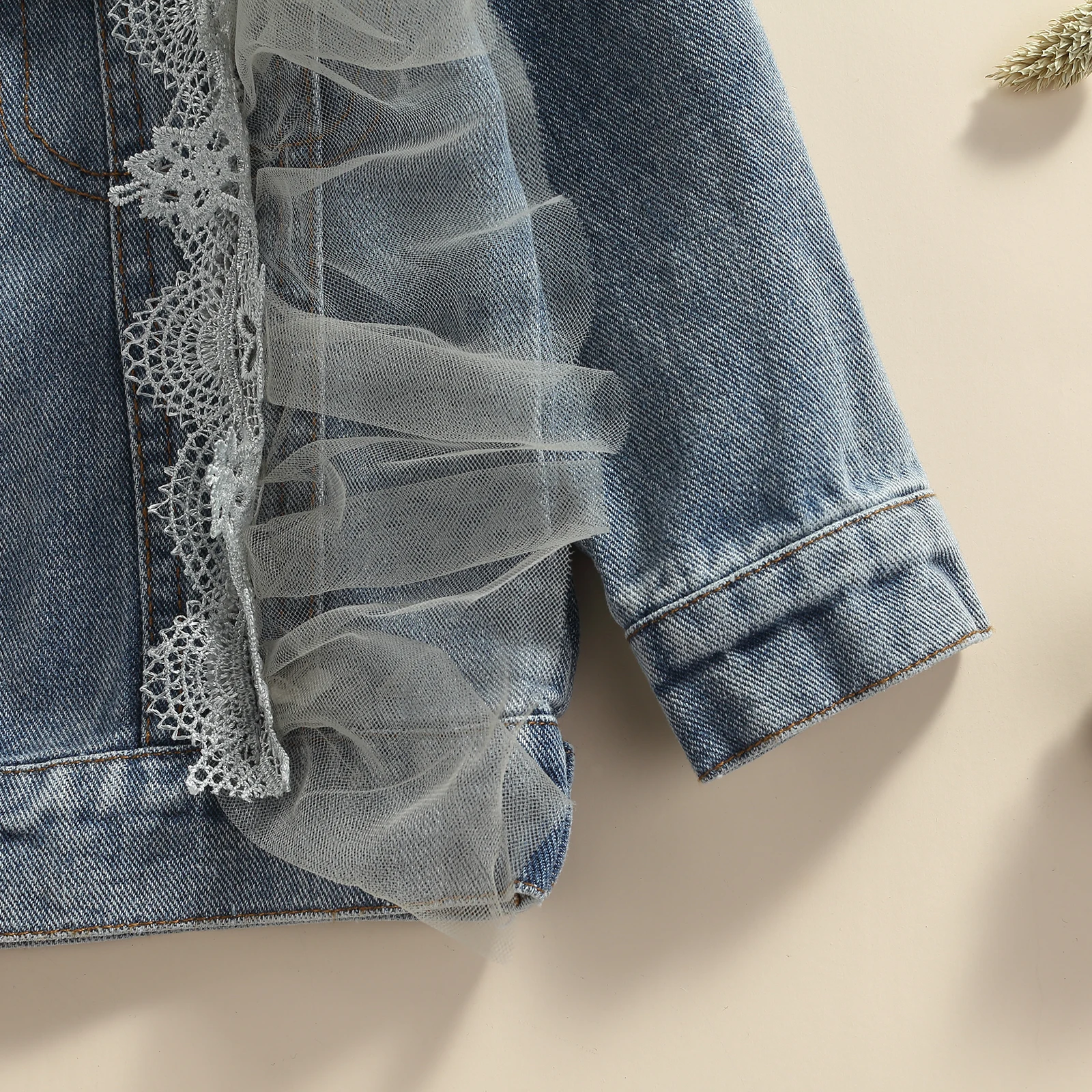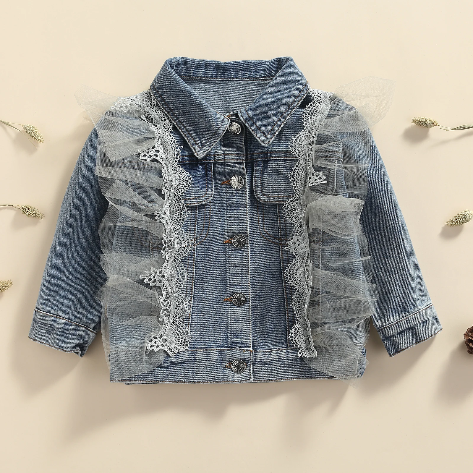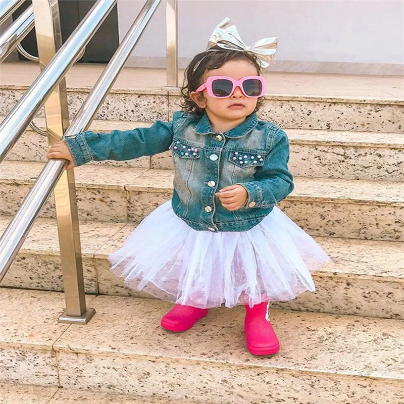 Детская осенняя одежда голубая джинсовая куртка с отворотом и длинн...