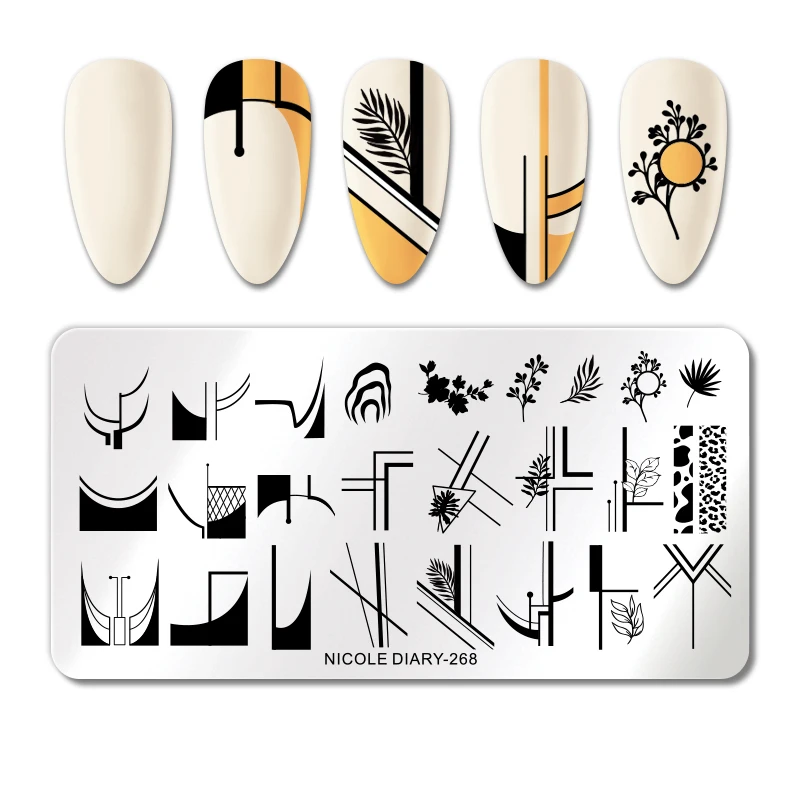 Трафарет для стемпинга ногтей с цветами и листьями, для маникюра