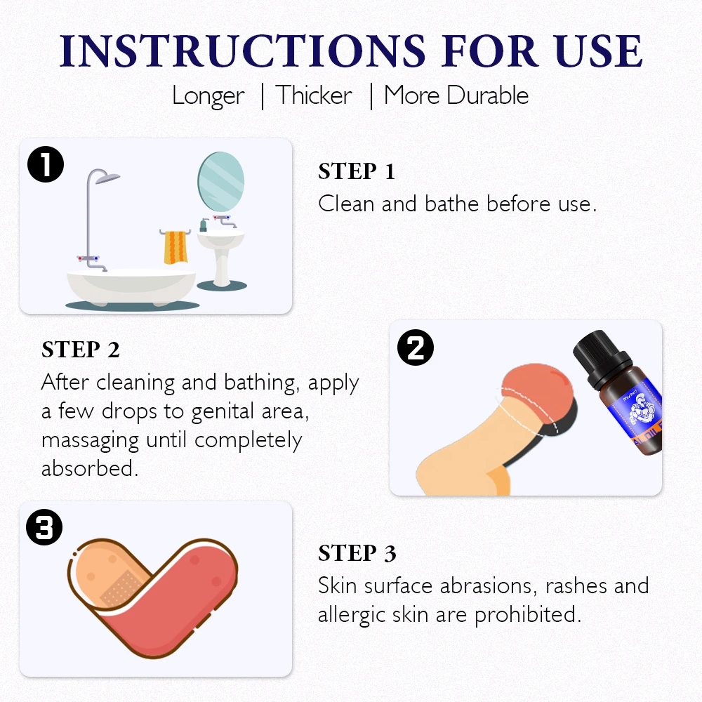 После купания высушите пенис и нанесите 5-10 капель на руку. Аккуратно натрите масло равномерно на эрект пениса, избегая желез и уретры, Массируя от кончика до вала, пока масло не исчезнет. Если Слишком жирная, аккуратно высушите тканью или бумажными полотенцами. Растяните пенис 2-8 см в течение 2-10 минут, пока не произойдет небольшое повышение температуры. Используйте ежедневно для улучшения производительности и улучшения результатов.