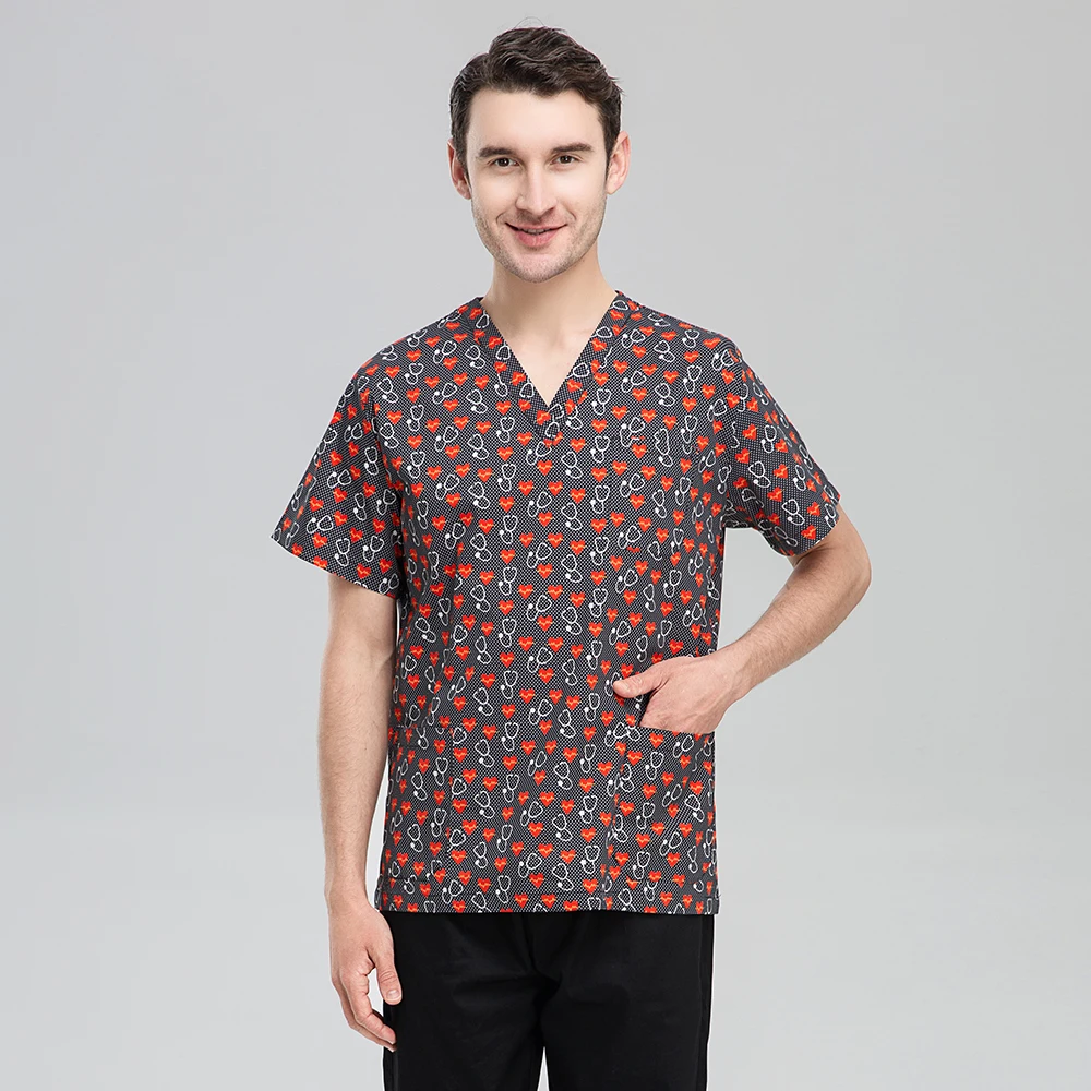 Хлопковая рабочая одежда унисекс с принтом, скрабы для салонов крас...