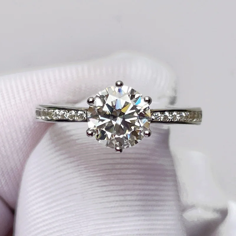 100% бриллиантовое кольцо с шестью когтями, Корона 1 карат, цвет 1 ...