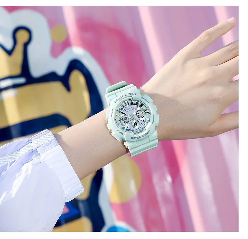 Пол: женщинСтиль: спортивный, модный, повседневныйМеханизм: цифровой механизм и кварцевый механизмМатериал ремешка: ремешок из искусственной кожиТип пряжки: ПряжкаЧасы циферблата: круглыеДиаметр циферблата: 45 ммЧехол Толщина: 16 ммШирина ремешка: 20 ммДлина браслета: 220 ммГлубина водонепроницаемости: 3 АТМФункции: хронограф, светильник, светодиодный дисплей, ударопрочный, Отображение недели, будильник
