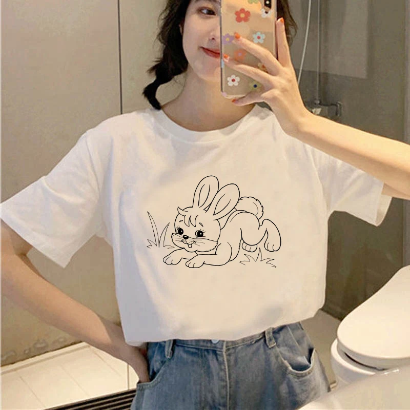 Летняя женская футболка Kawaii с милым животным принтом, Повседневная модная Эстетическая футболка с коротким рукавом для девочек, женская одежда большого размера