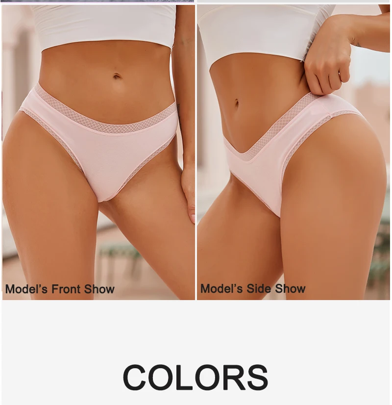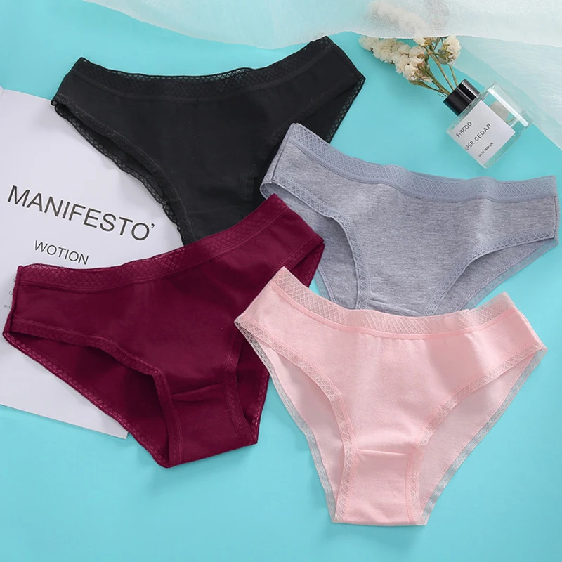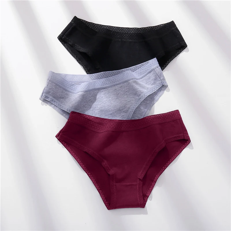 Трусы женские хлопковые однотонные с кружевом, 3 шт.