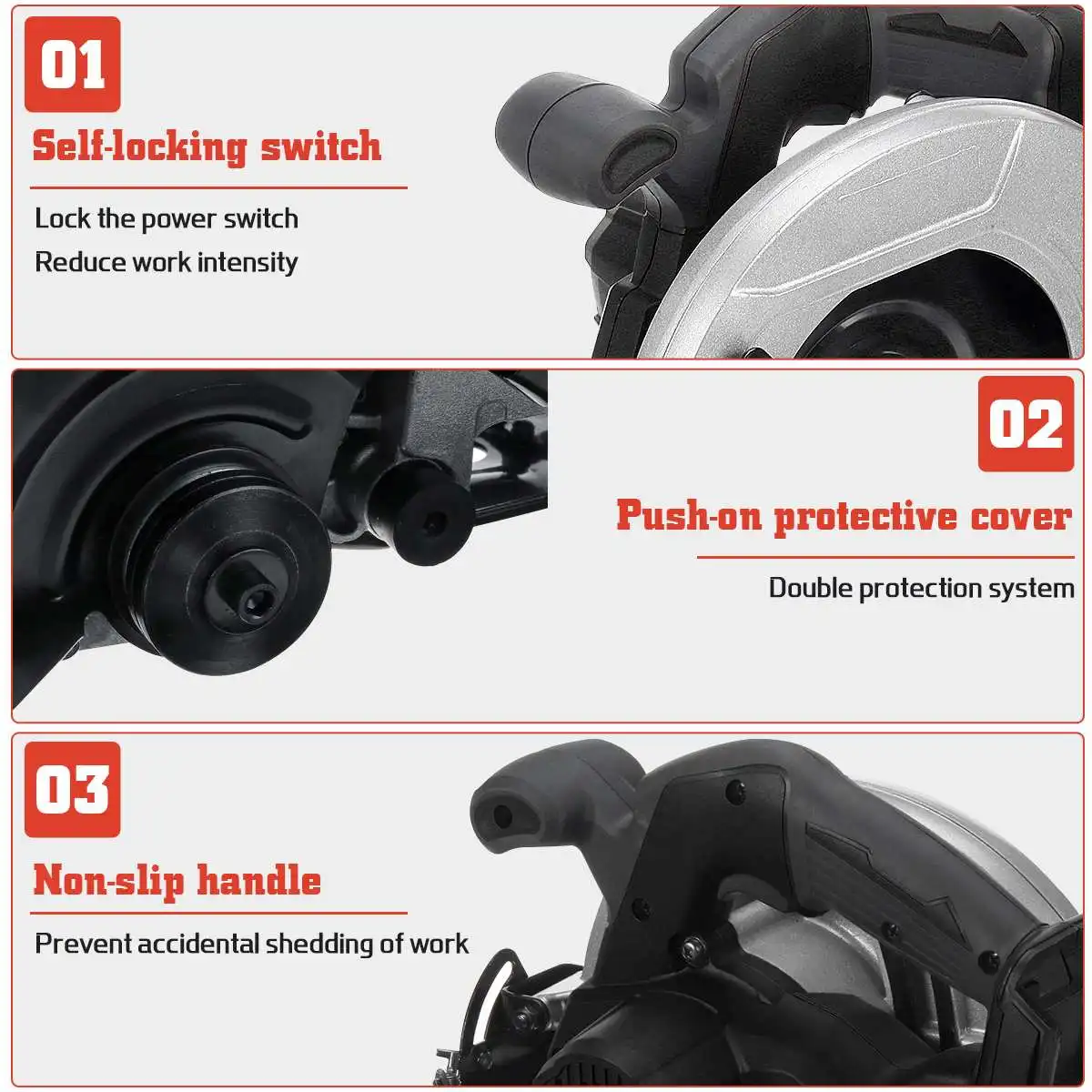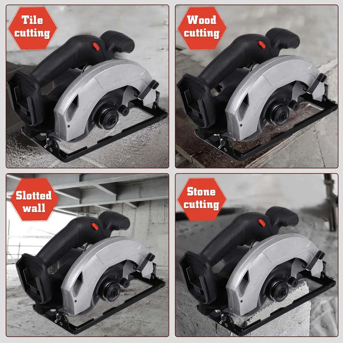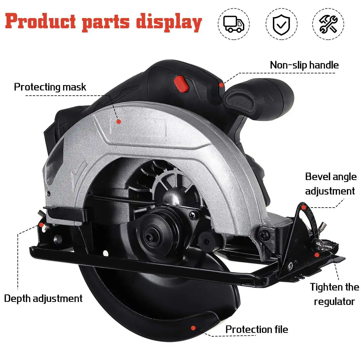 Особенности-Циркулярная пила имеет двигатель с высоким крутящим моментом и компактную конструкцию для различных применений резания, а также режет 2X материал при 45 градусах.-Разработан для гладкой, точной резки и дополнительной прочности в суровых условиях работы.-Широкое применение, подходит для резки твердой древесины, ПВХ, МДФ, фанеры и т. д.-Двигатель с высоким крутящим моментом производит 4500 оборотов в минуту для более быстрой резки.Посылка в комплекте1 электрическая циркулярная пила(Аккумулятор и зарядное устройство в комплект не входят)