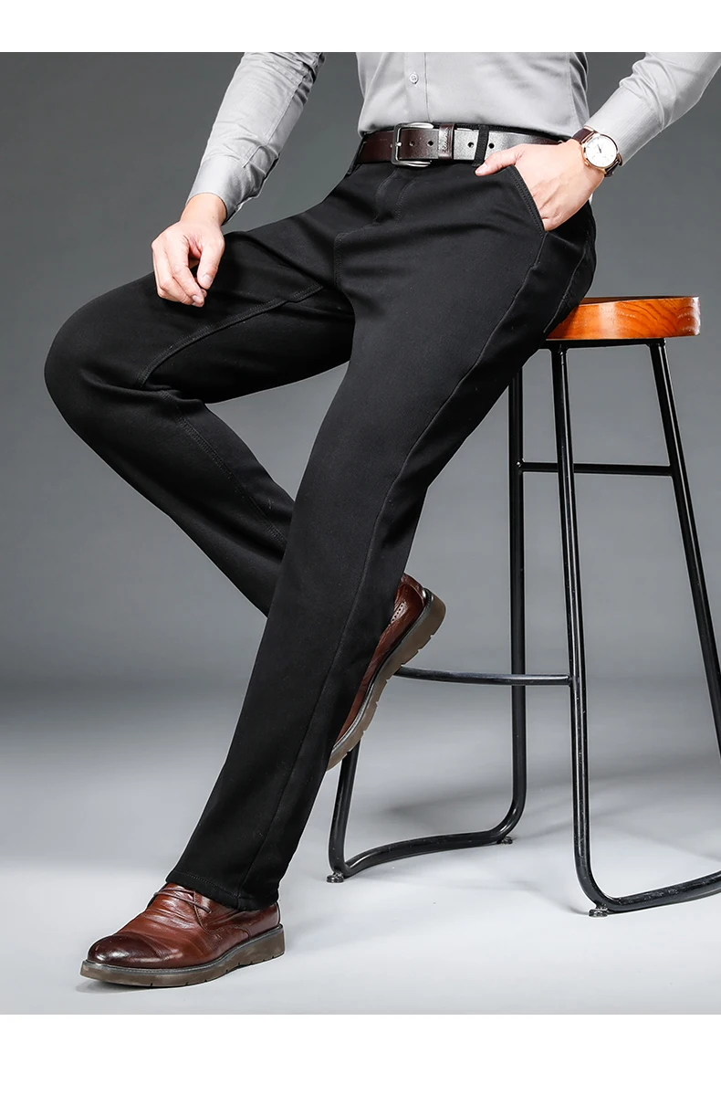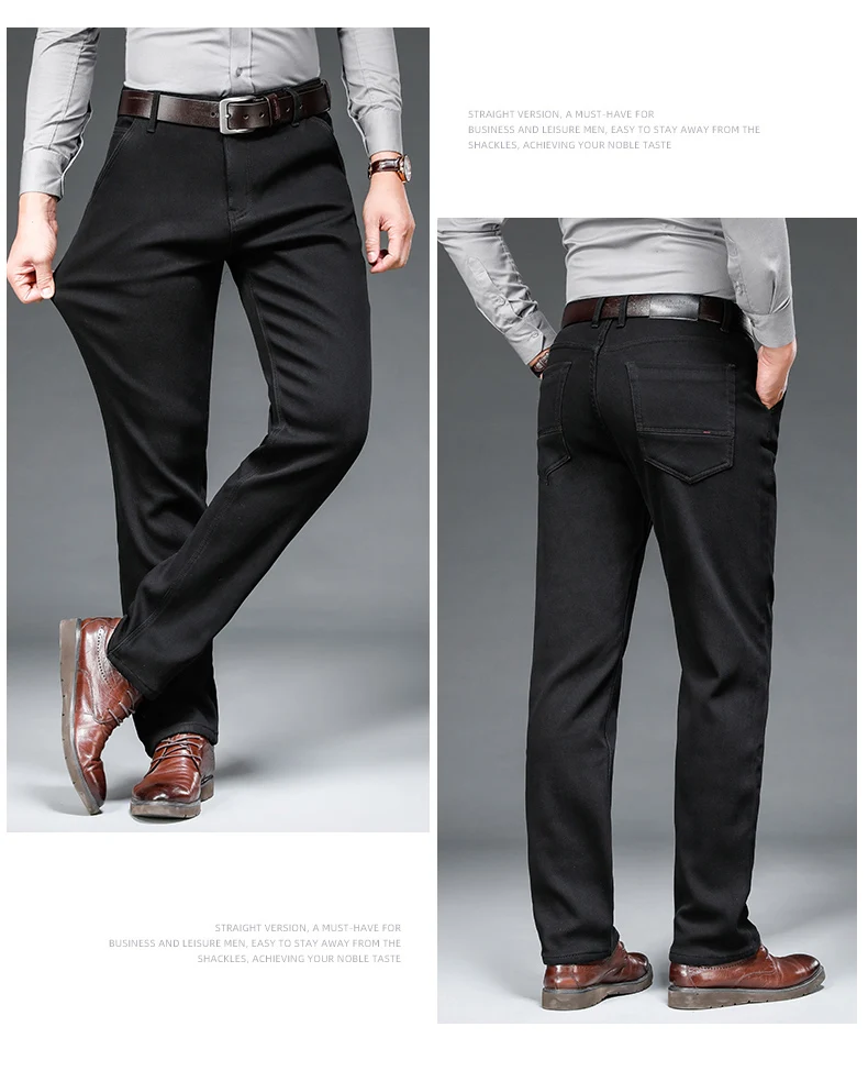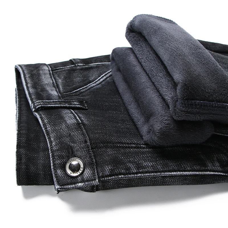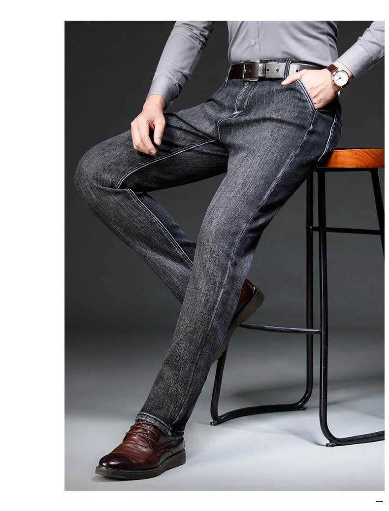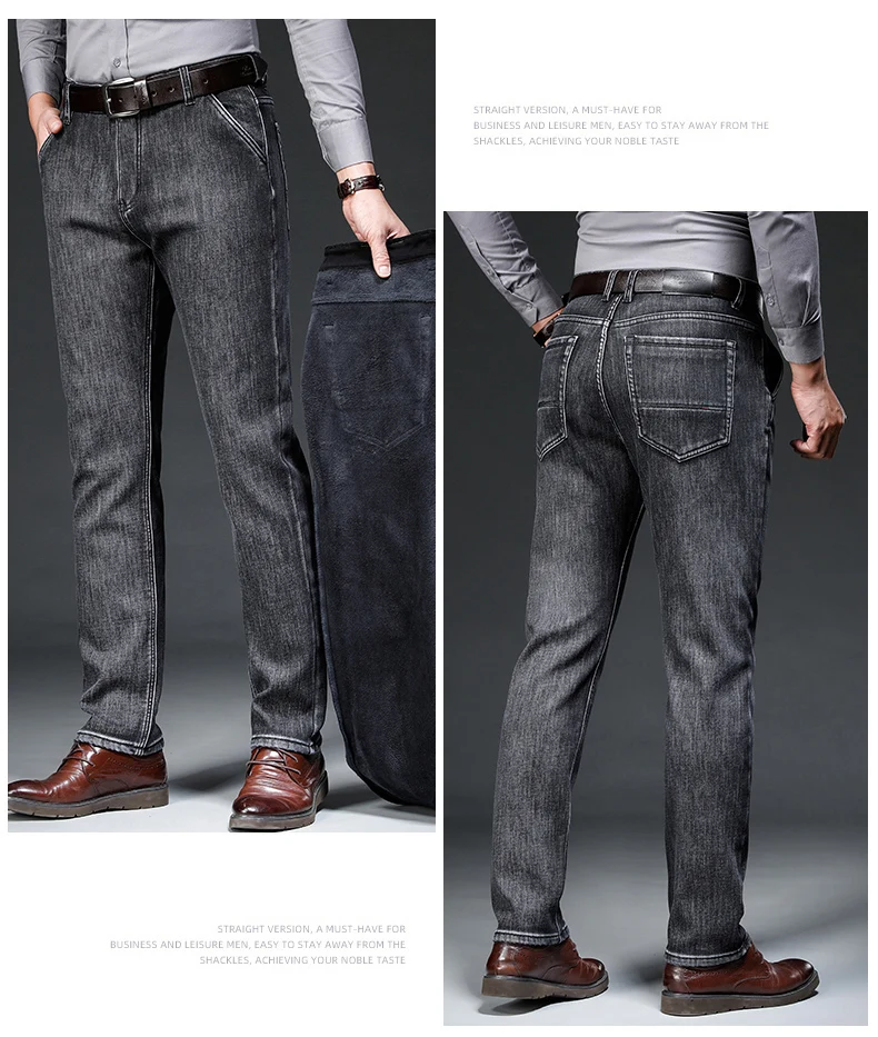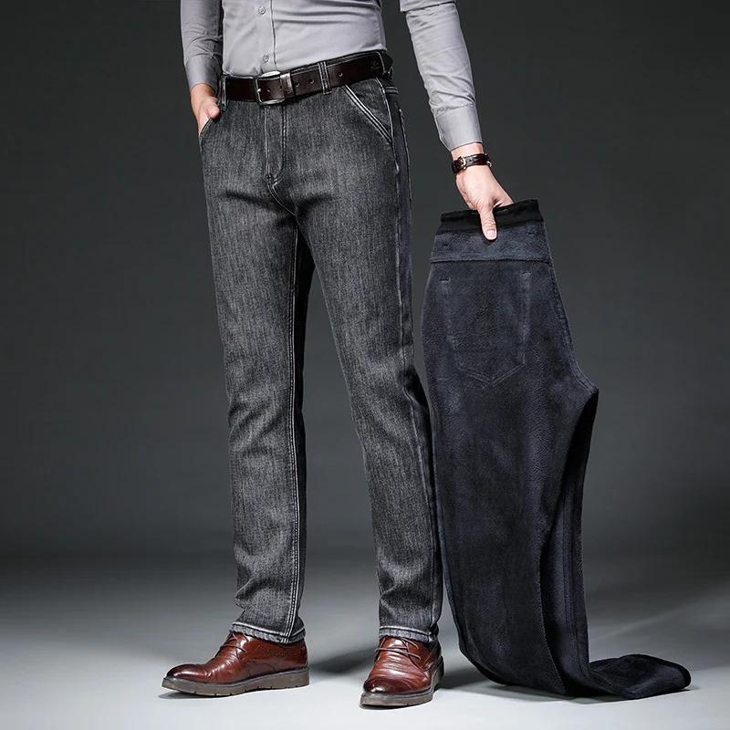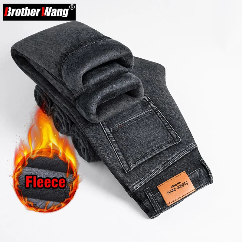 Зимние серые флисовые джинсы Brother Wang для мужчин, деловые повседневные Стрейчевые джинсовые брюки, плотные теплые брюки, мужские брендовые
